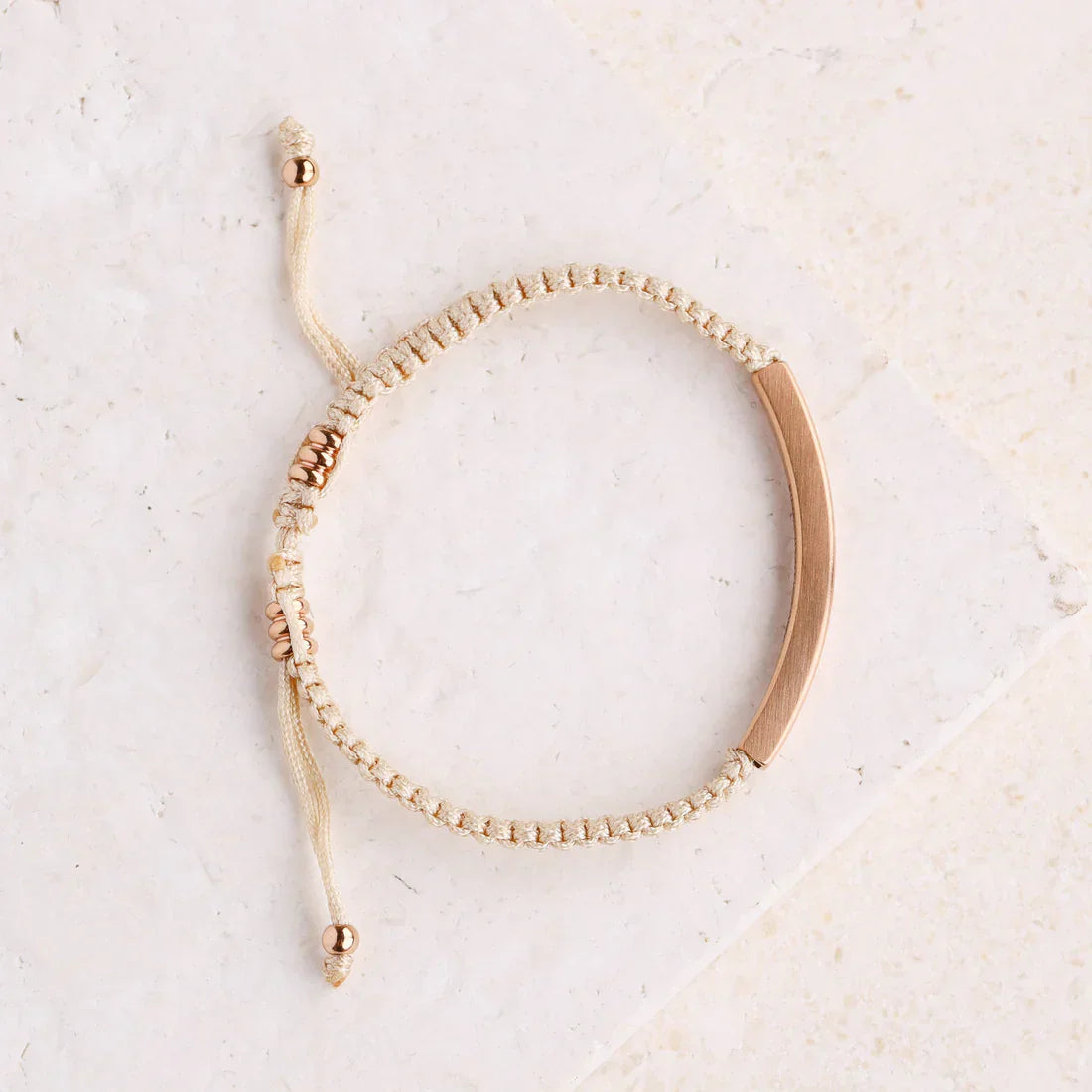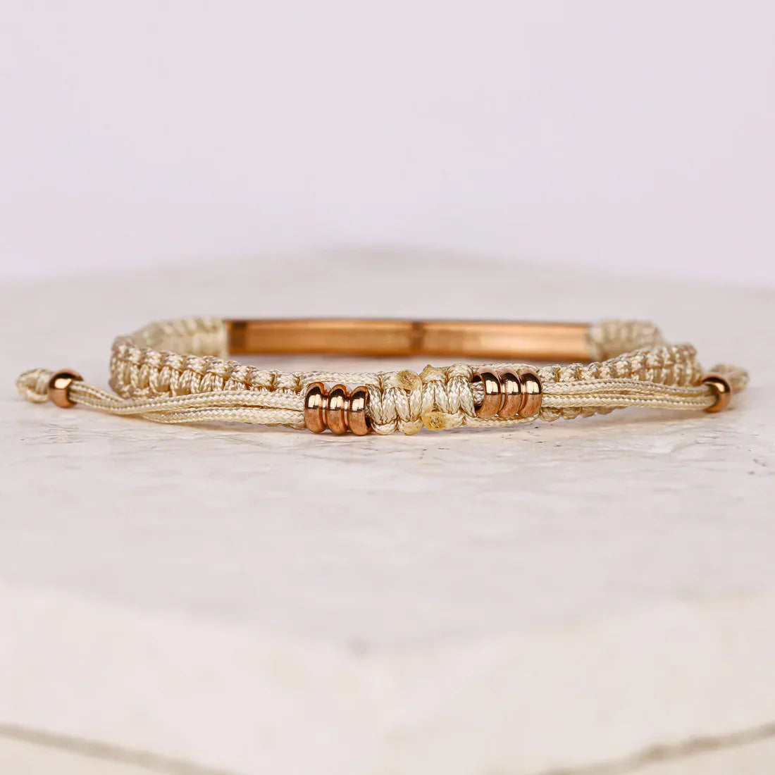 Dare to layer it up! This hand-crafted macrame bracelet pairs perfectly with others to create bold, meaningful combinations. Featuring a sturdy nylon band and engraved stainless steel bar, it's hypoallergenic and tarnish-resistant—ready for everyday wear. The adjustable design fits most wrists, making it the ideal companion piece for building your signature stack. Mix, match, and inspire!