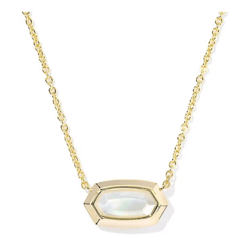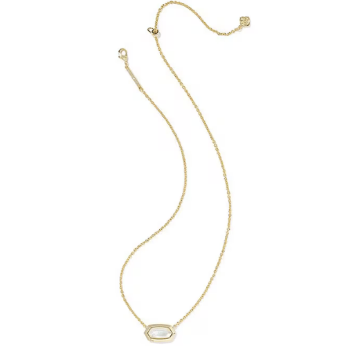 Kendra Scott Elisa Bezel Short Pendant Necklace-- Gold Ivory Mother Of Pearl