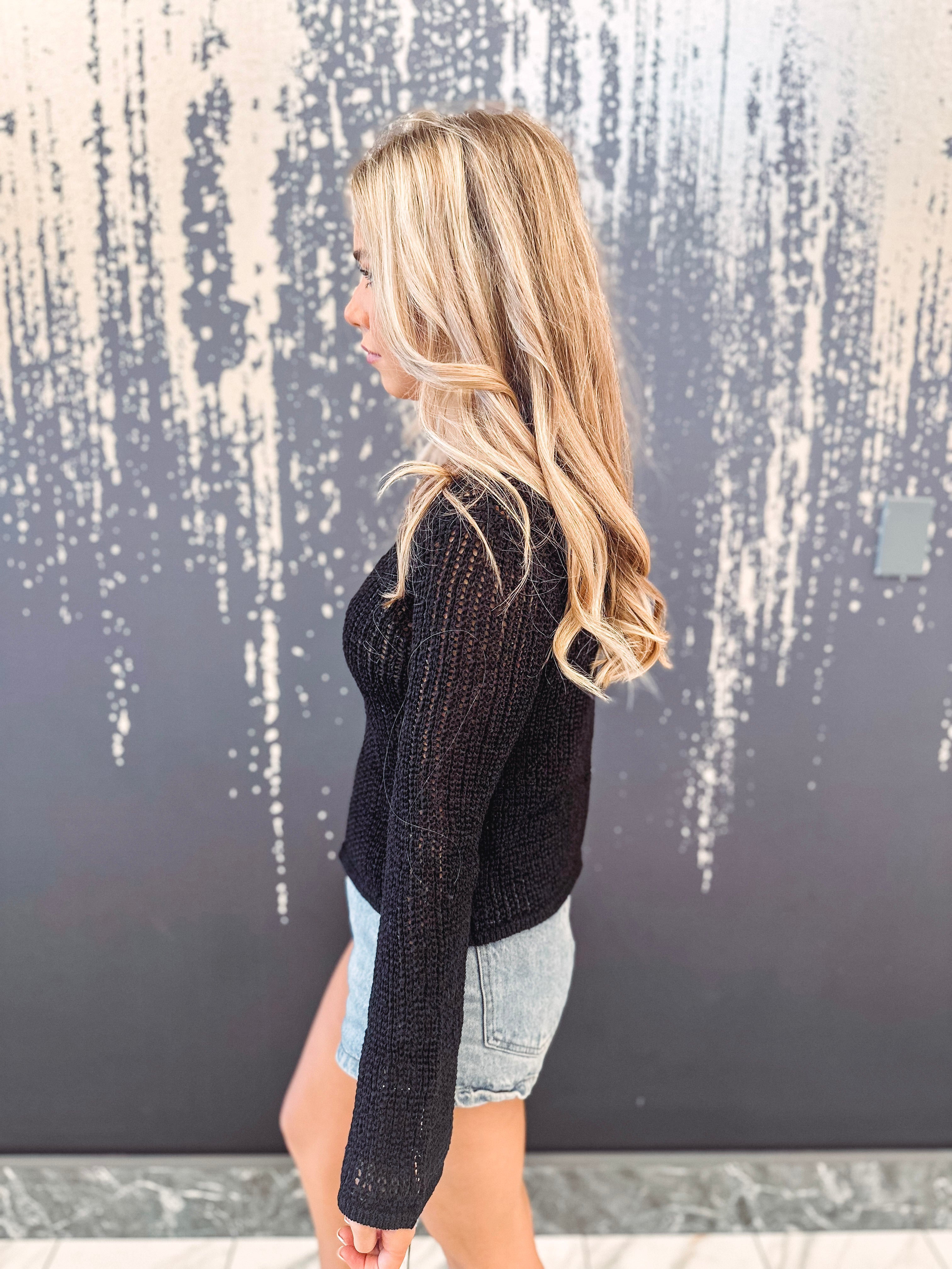 Kaye Bell Sleeve Knit Cardigan-- Black