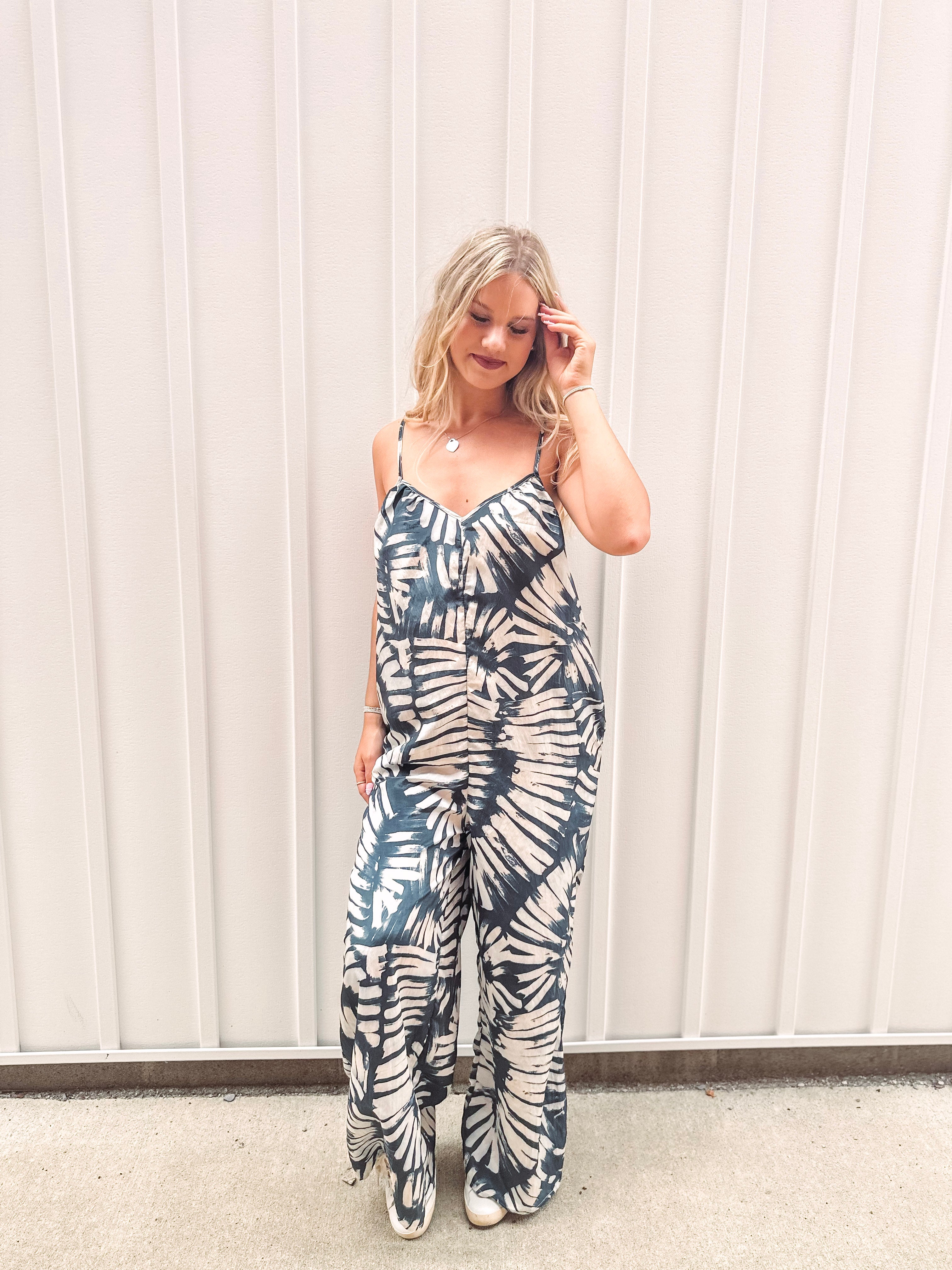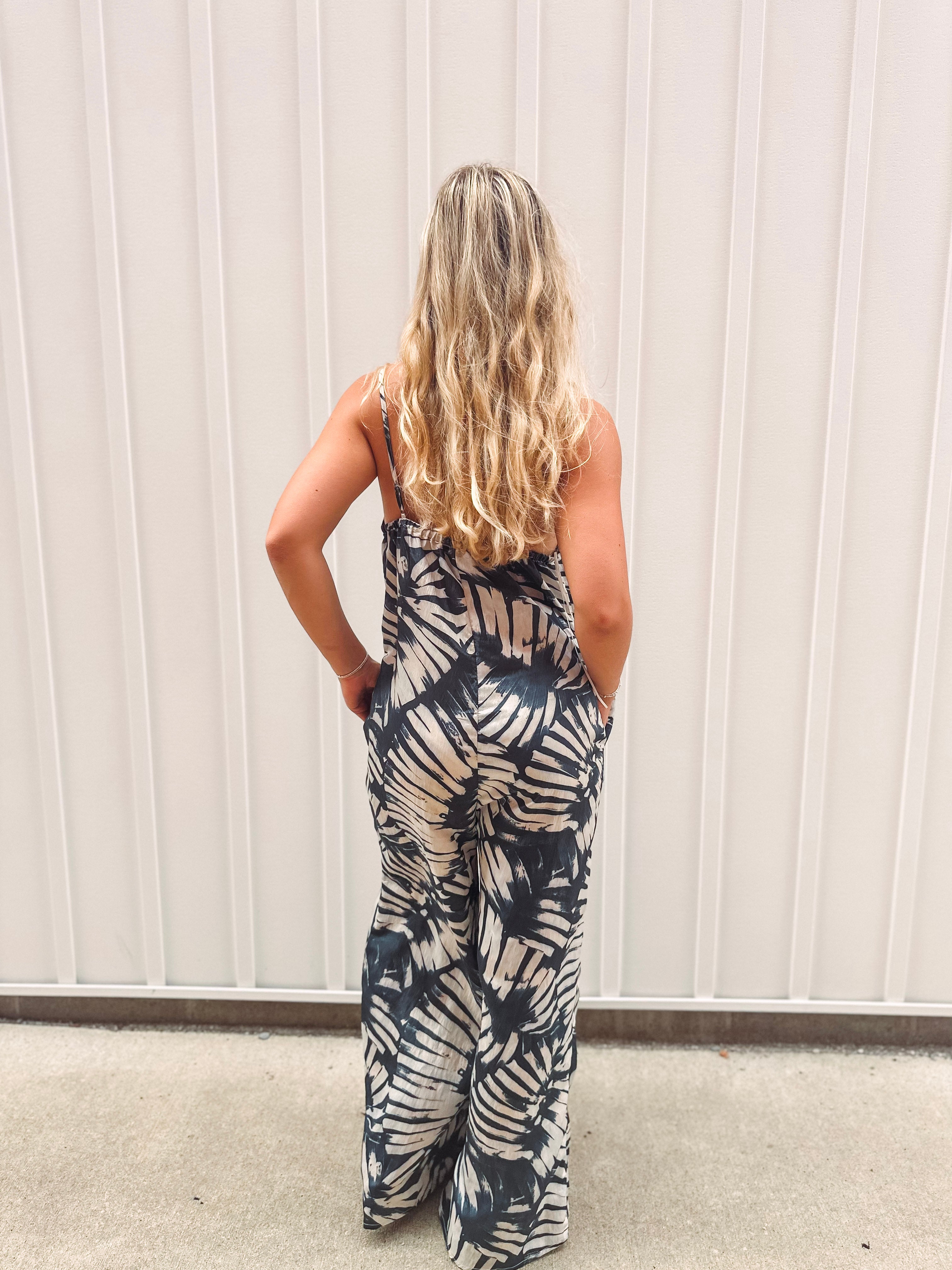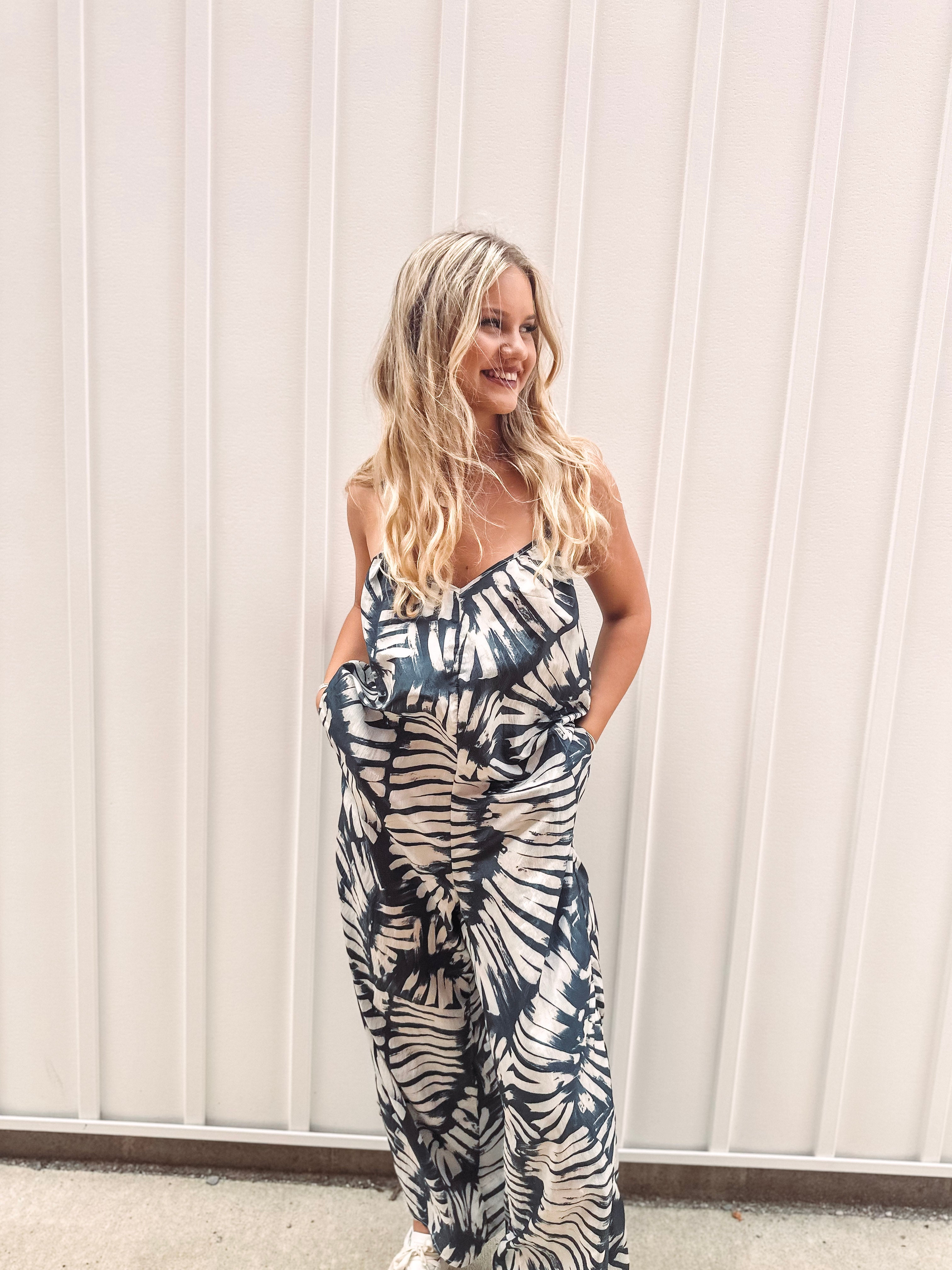 Get ready for summer with the flowy Steve Madden Desdemona Jumpsuit. Featuring thin cami straps and wide legs, this bold black and white print is a must-have staple for any warm weather wardrobe. Summertime chic has never been easier!
