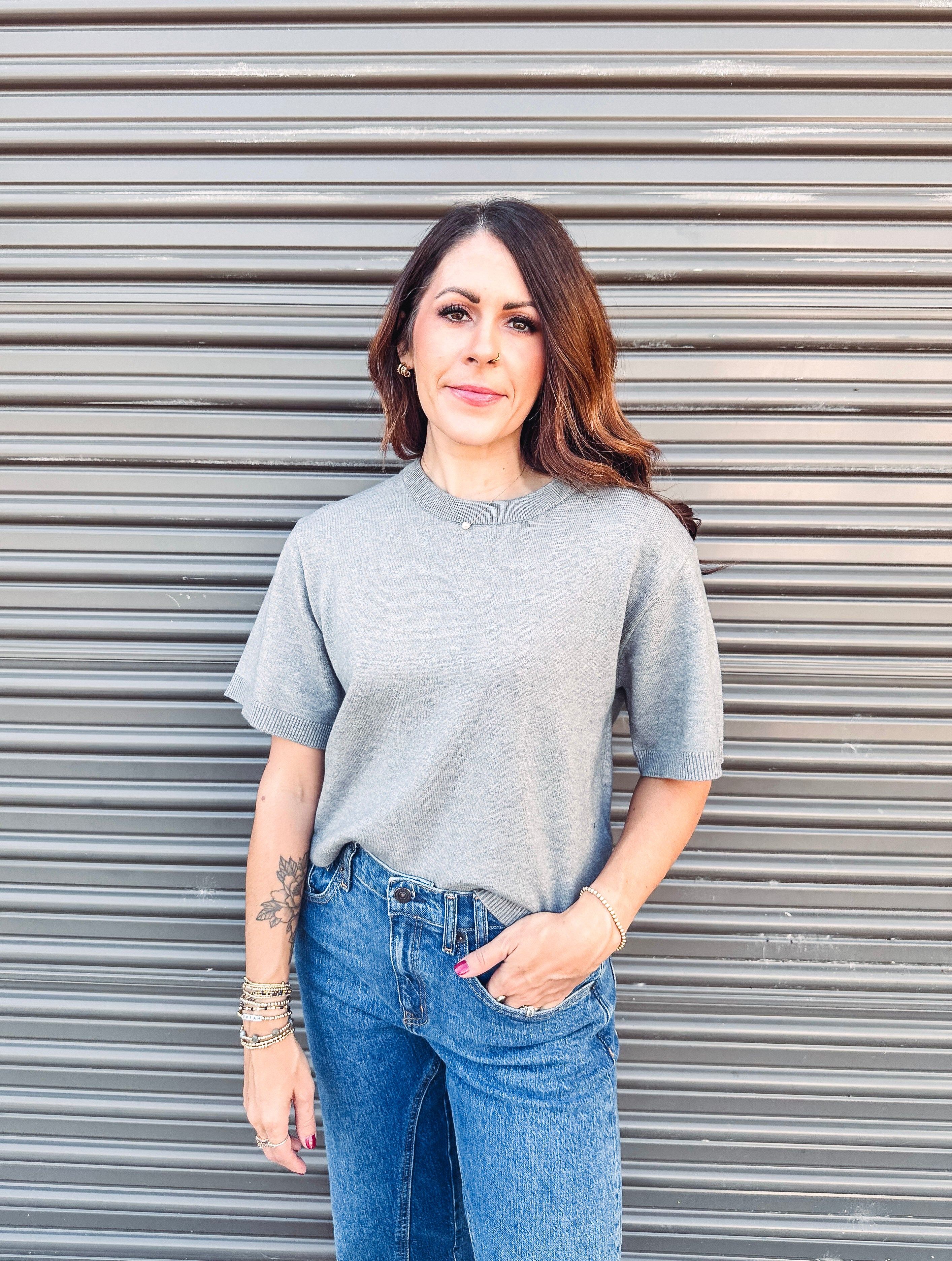 Slip into the Steve Madden Kori Sweater in Grey Heath—where cozy meets cool! With its soft touch and breezy short sleeves, it’s just right for layering up or flying solo. Perfect for those days when the weather can’t make up its mind, this sweater adds a dash of charm and comfort to your outfit, all while keeping things light and playful.
