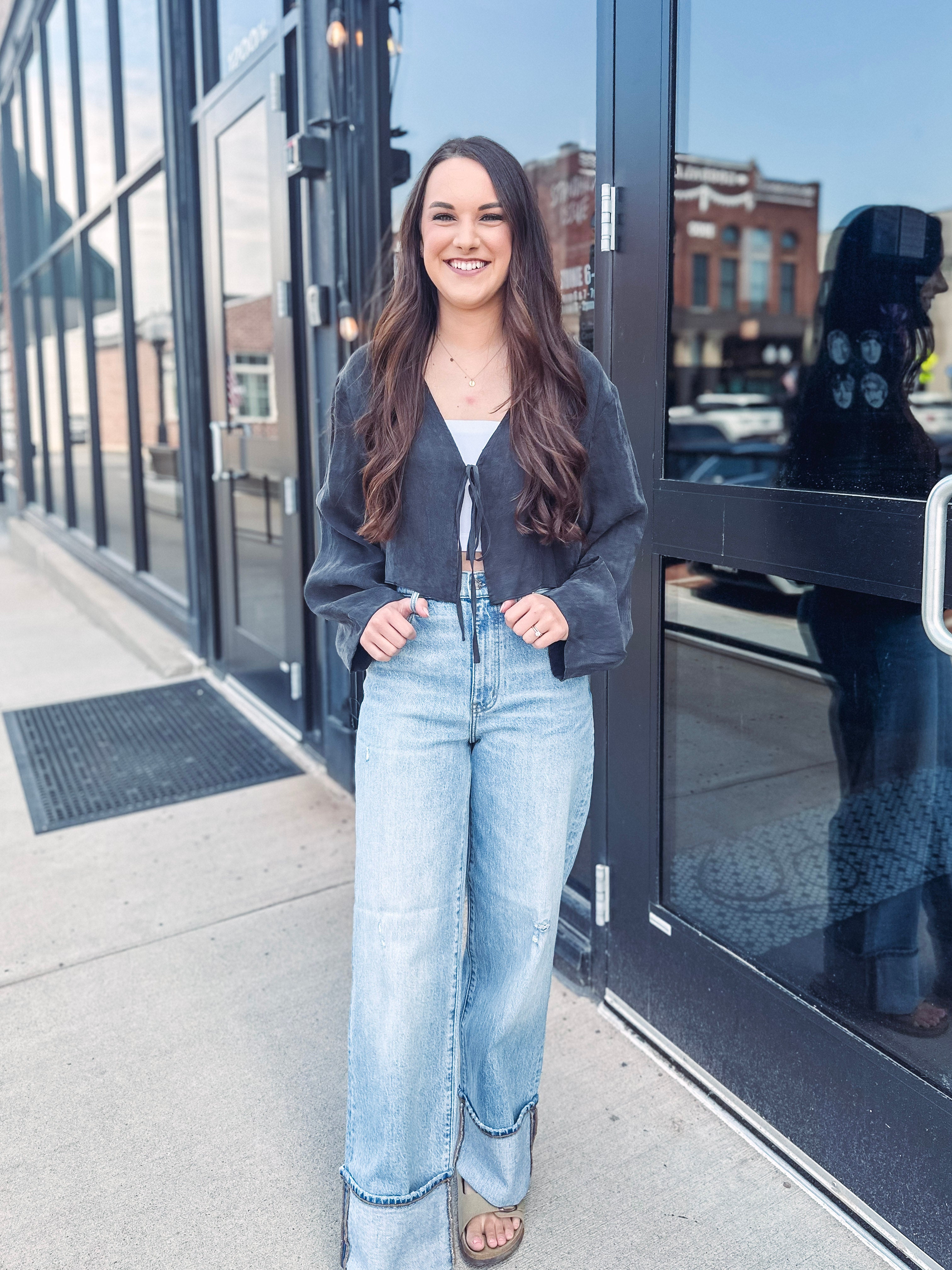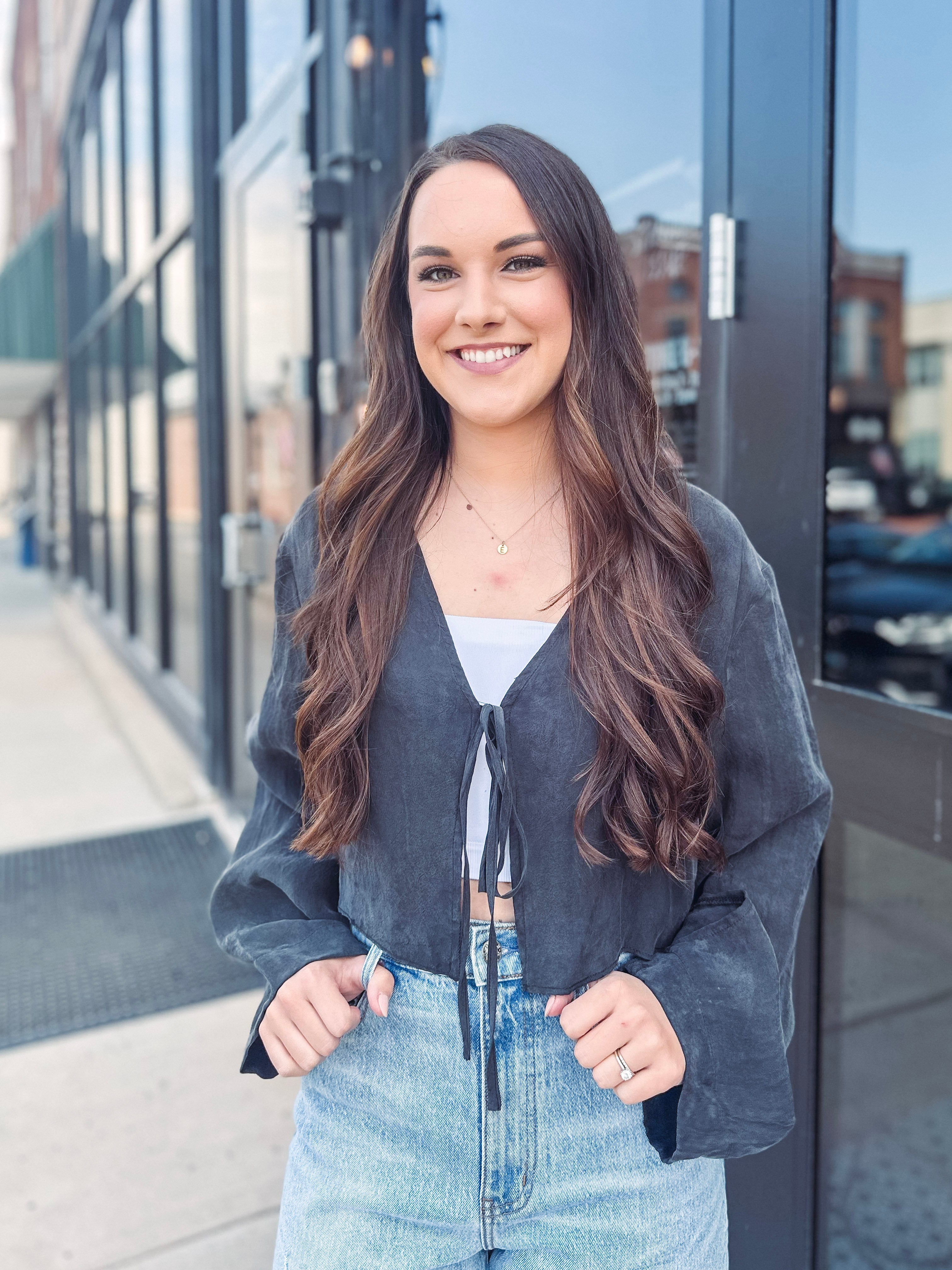 Bless Your Heart Faux Suede Tie Front Top