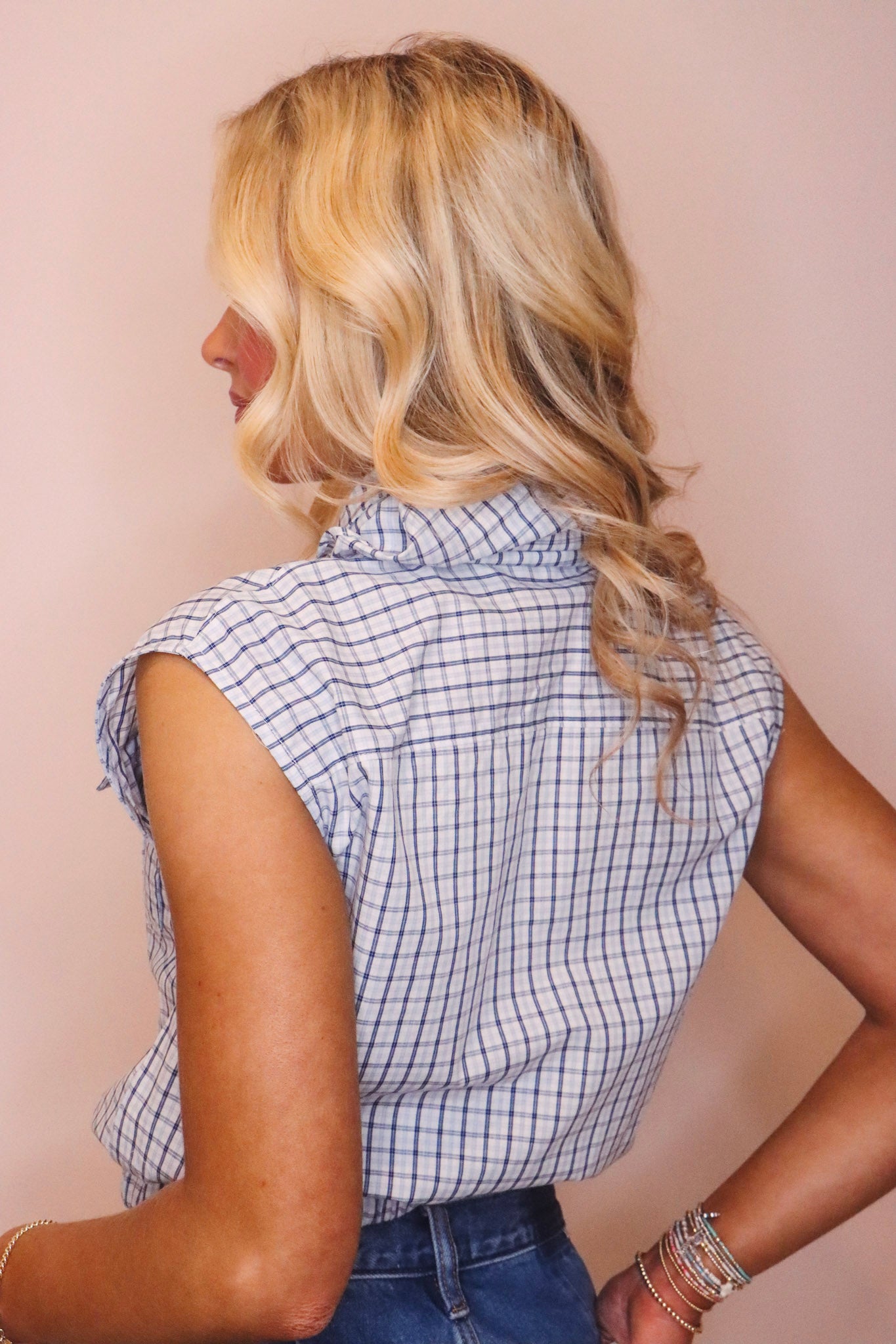 Elevate your warm-weather wardrobe with the Steve Madden Scout Shirt in navy plaid. This sleeveless essential features a crisp, collared neckline and button-front closure that delivers effortless polish. Whether you're dressing up for brunch or keeping it casual, this versatile piece transitions seamlessly from day to night. The timeless plaid pattern adds visual interest while the tailored silhouette keeps things chic and put-together. A wardrobe staple that works as hard as you do.