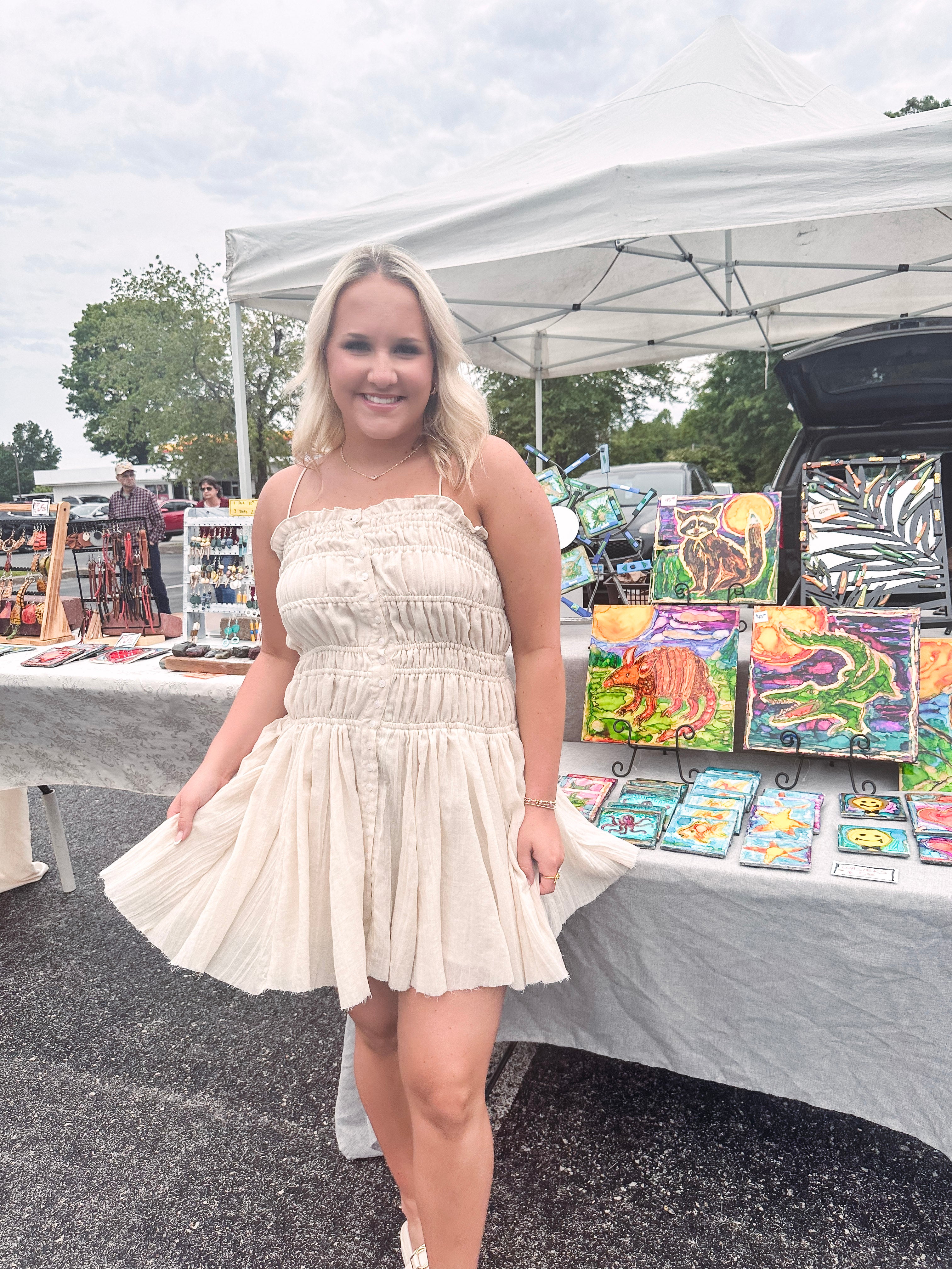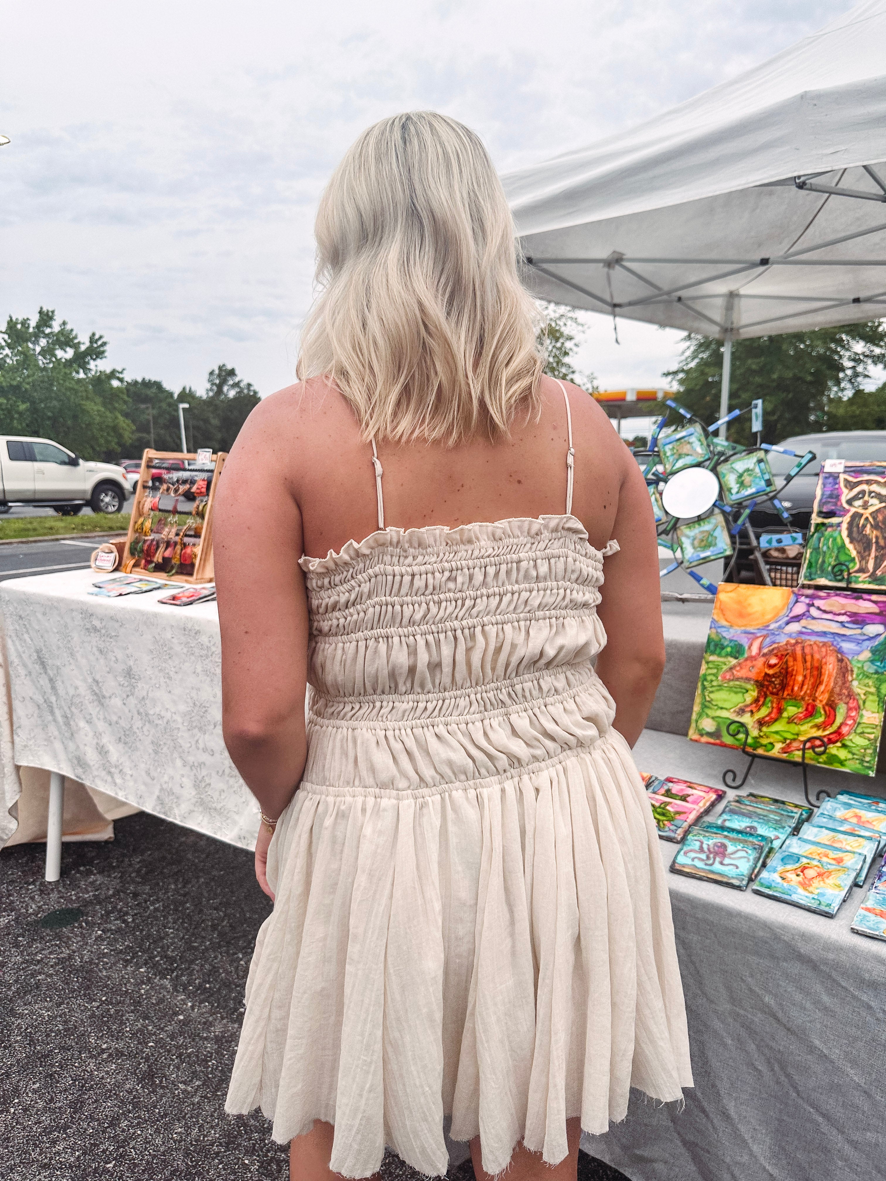Get ready for some tropical vibes with our Tiki Time Cinched Ruffle Mini Dress! This sweet and playful dress features a cinched bodice, delicate camisole straps, and a soft and comfortable material that will keep you feeling easy breezy all day long. Perfect for your next vacation, this dress is the ultimate summer must-have.