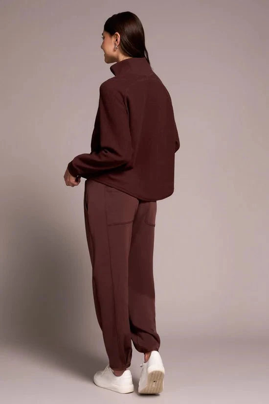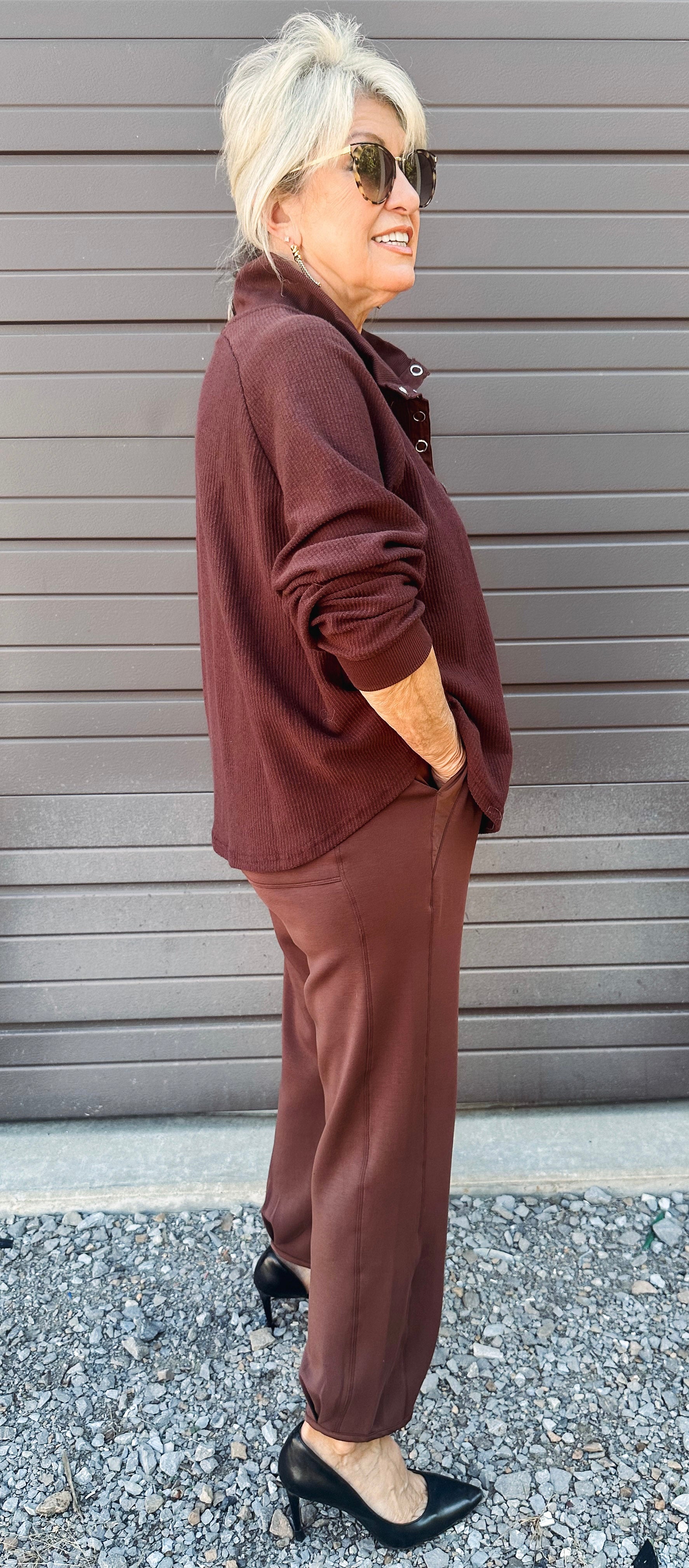 Tribal Johnny Collar Ribbed Henley Top--Cocoa