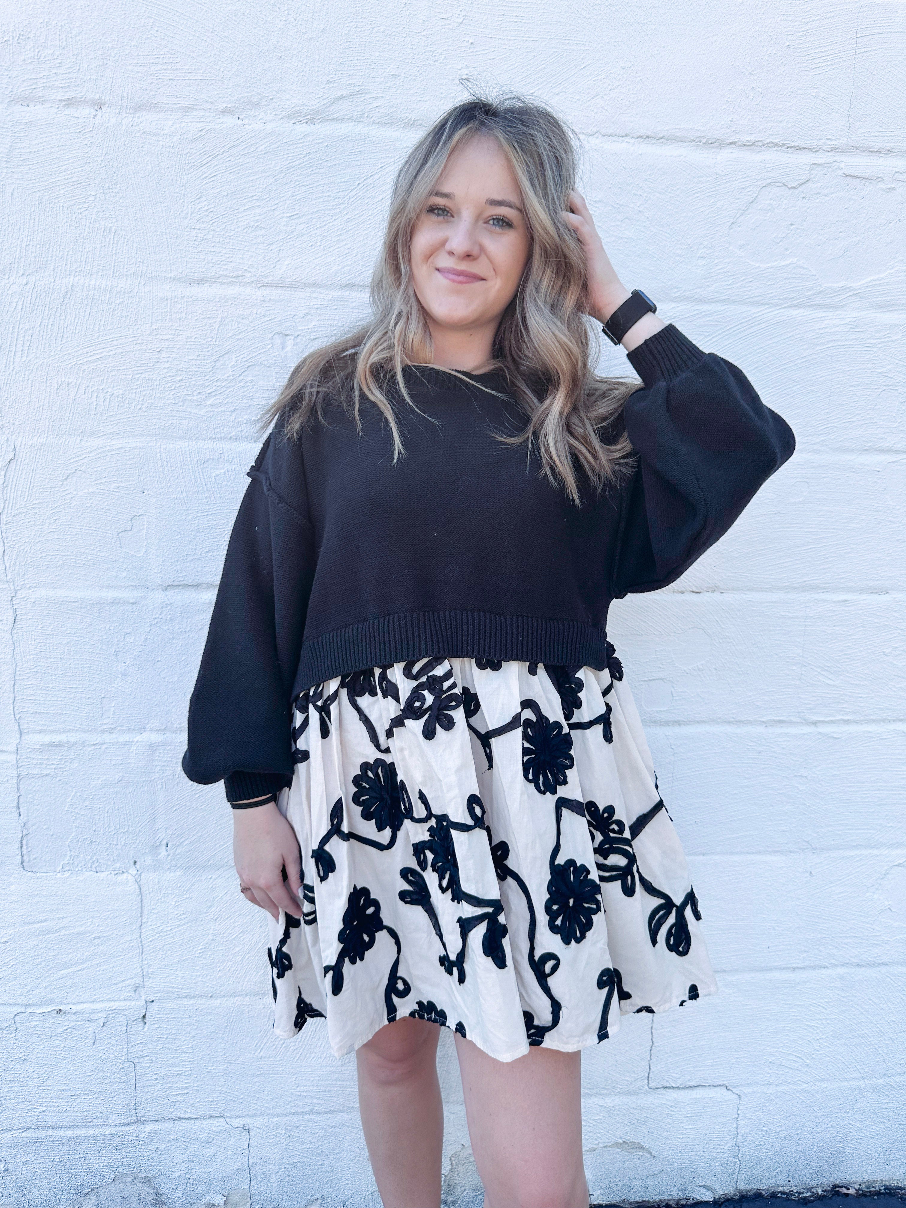 Cozy meets cute in this oversized sweater paired with a charming floral embroidered skirt. Snuggle up in soft warmth while the delicate blooms add a splash of whimsy to your look. Easy-care instructions keep your outfit fresh—just hand wash cold and line dry to keep it bright and beautiful. Perfect for days when comfort and style are equally important!