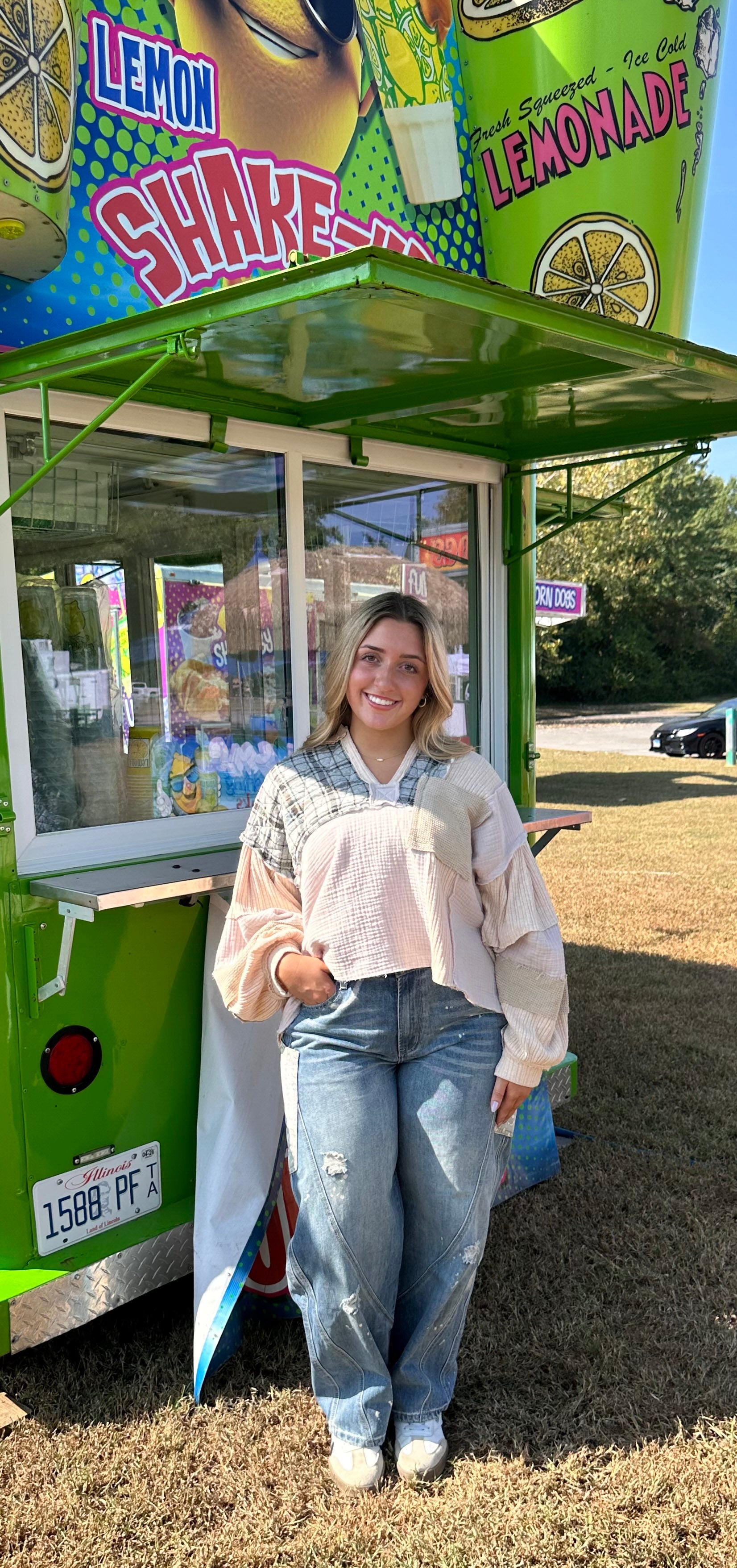 This top brings fun to your wardrobe with its playful split and notched neckline, perfect for adding a quirky twist to any outfit. The relaxed drop shoulders and long sleeves with banded cuffs offer cozy comfort, while the exposed, frayed hems and seams give it an effortlessly cool, lived-in vibe. It’s the perfect mix of casual charm and edgy style for your everyday adventures.