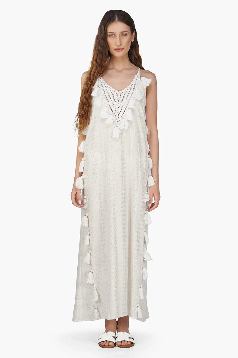 Golden Pearl Lurex Tassel Beach Maxi Dress