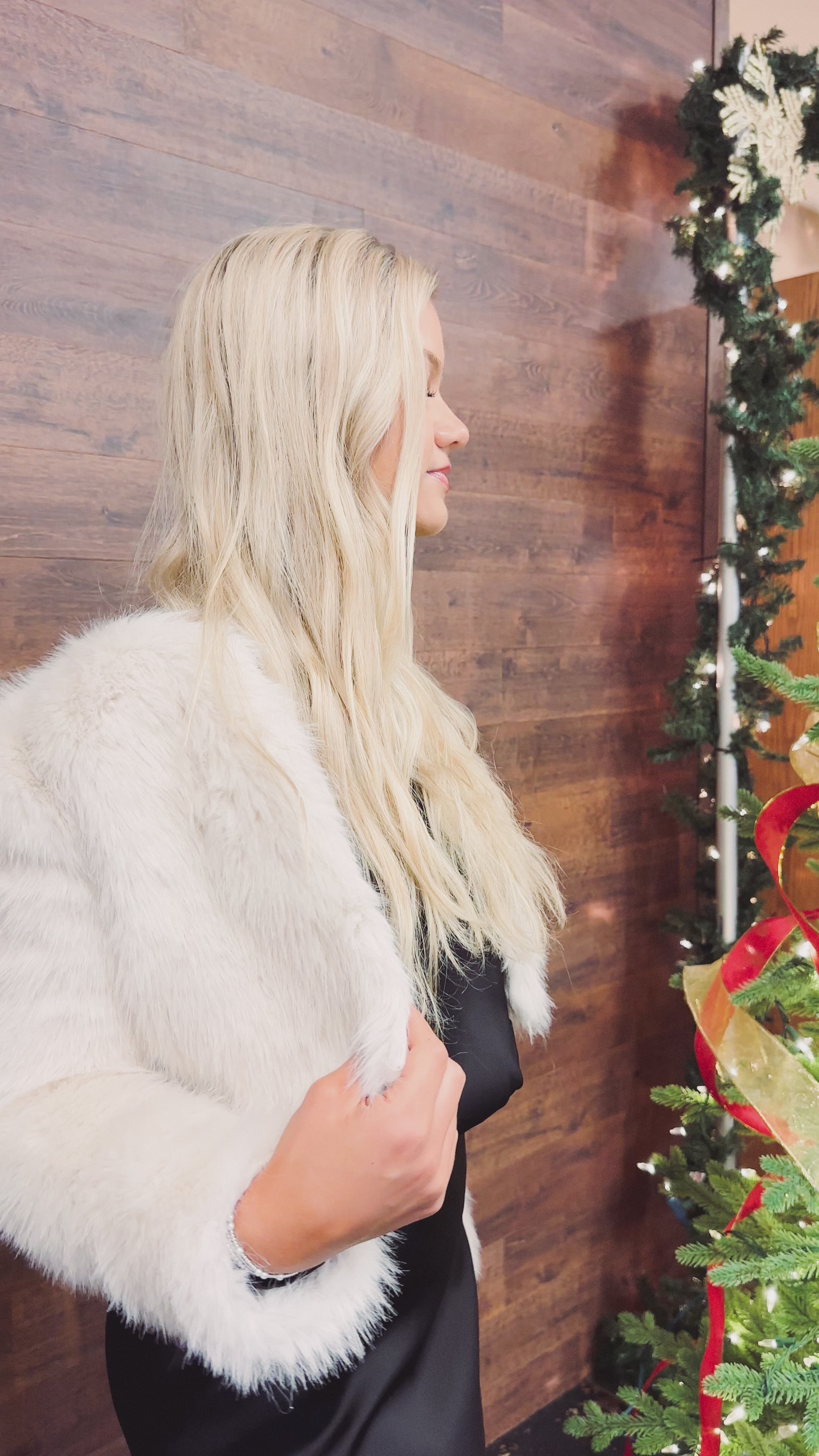 Cozy up in the Lacey Cropped Faux Fur Jacket, a cream-colored delight with long sleeves and a flattering cropped waist. Perfect for layering over your favorite tees or dresses, it adds playful texture to any outfit. Pair it with jeans for a casual vibe or team it with a mini skirt for chic, show-stopping style.