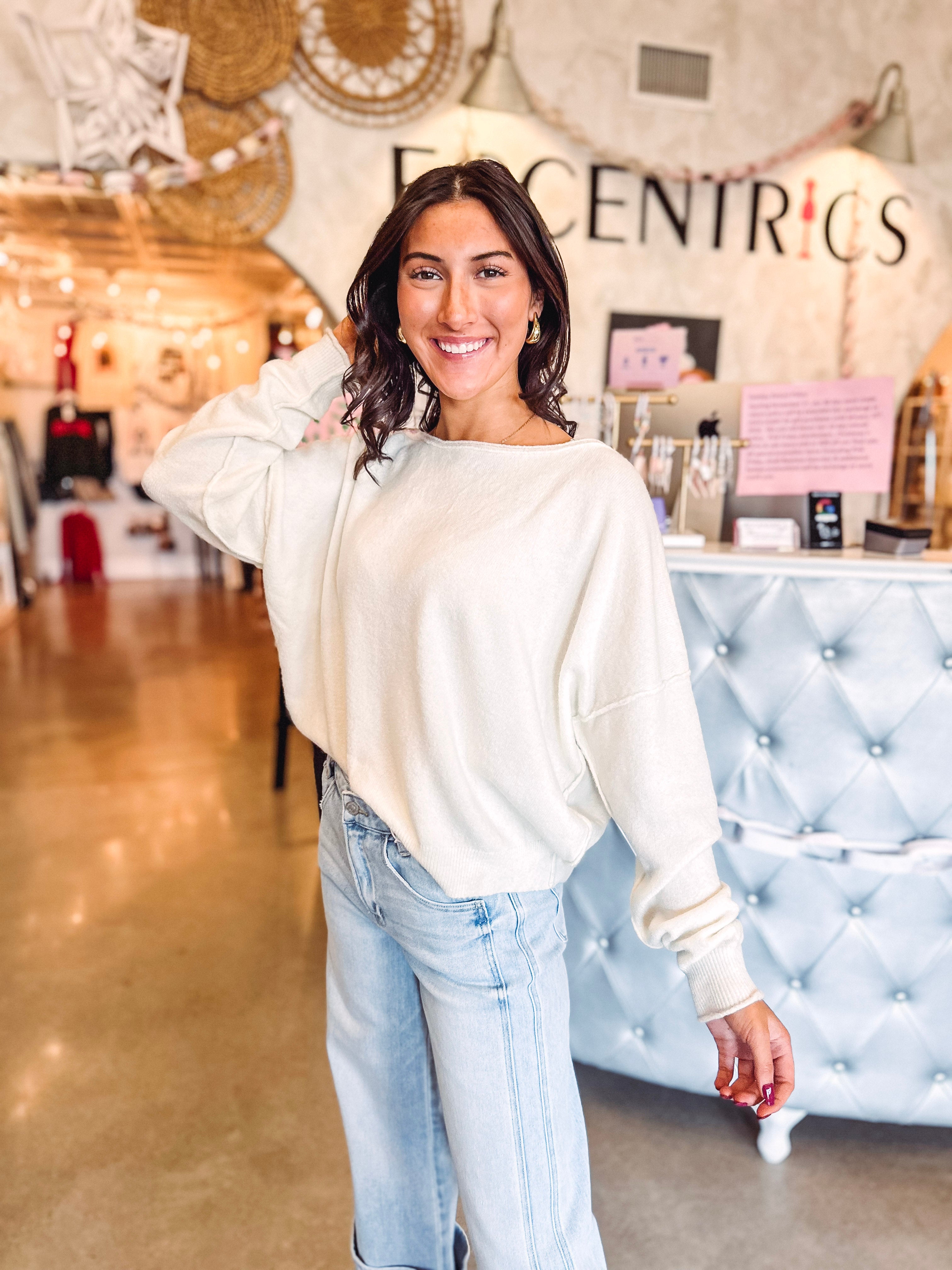 Wrap yourself in cloud-like comfort with this oversized boat-neck sweater, crafted from a luxuriously soft wool blend. The relaxed, boxy silhouette pairs perfectly with drop-shoulder sleeves and a ribbed hem for effortless style. Contrasting rolled trims add a playful design detail that elevates the everyday essential. Layer it over your favorite long-sleeve tee for cozy warmth without the bulk—your new go-to piece for looking put-together while feeling utterly snug.