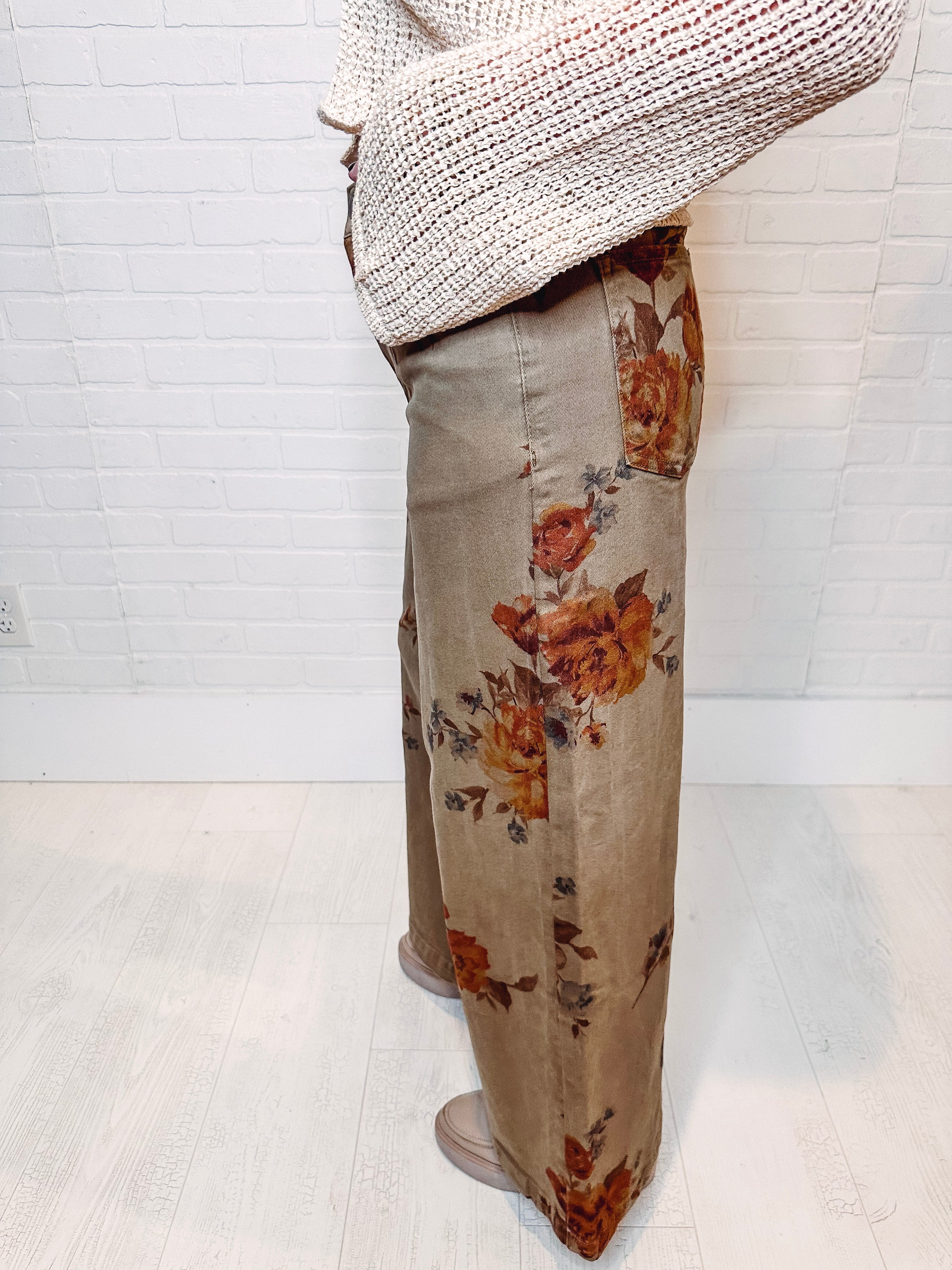 Make a bold statement with these rich olive green wide-leg jeans, featuring an eye-catching feminine floral print that brings personality to your everyday rotation. Perfect for riding the statement denim trend, they're surprisingly versatile—throw them on with a basic cardigan and you've got an effortless 10/10 outfit that feels both intentional and laid-back. The perfect piece for anyone ready to step beyond the basics and let their style do the talking.
