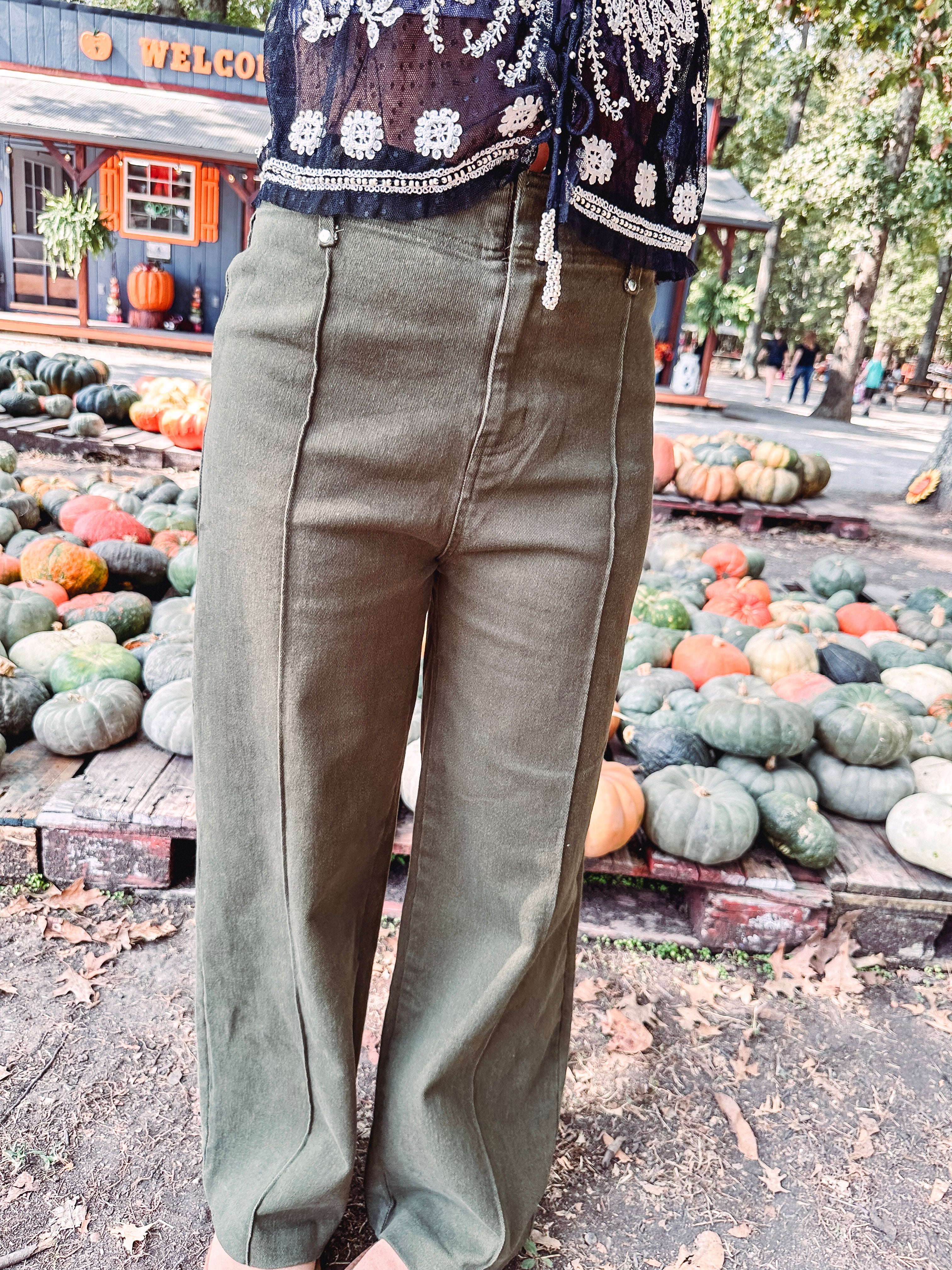 Step up your style game with these chic high-rise wide-leg pants! Featuring sleek front seams and handy back patch pockets, they’re as practical as they are polished. The lightweight woven fabric keeps you comfy and confident all day long. Perfect for adding a dash of sophistication to any outfit without sacrificing ease—get ready to twirl, strut, and shine effortlessly!