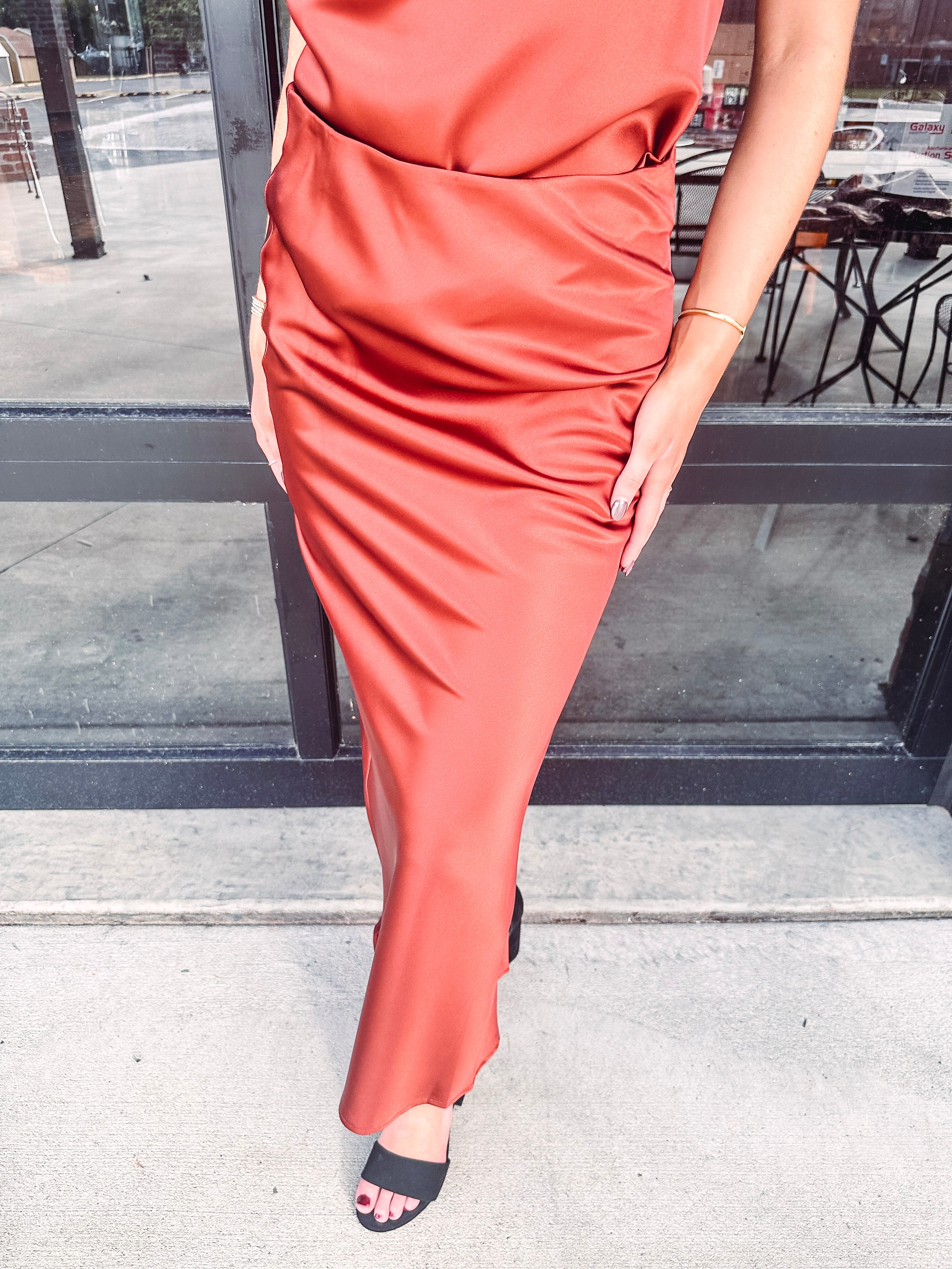 Vivienne Satin Midi Skirt--Bronze