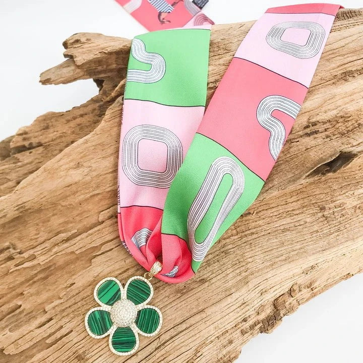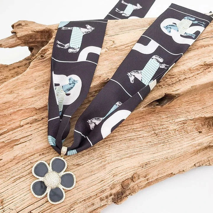 Add a splash of fun and flair with this trendy silk scarf necklace featuring a bold, heavy gemstone flower pendant. Its funky style effortlessly combines elegance with a playful twist, making it the perfect statement accessory to brighten any outfit. Lightweight yet eye-catching, it brings vibrant charm and unique personality wherever you go.