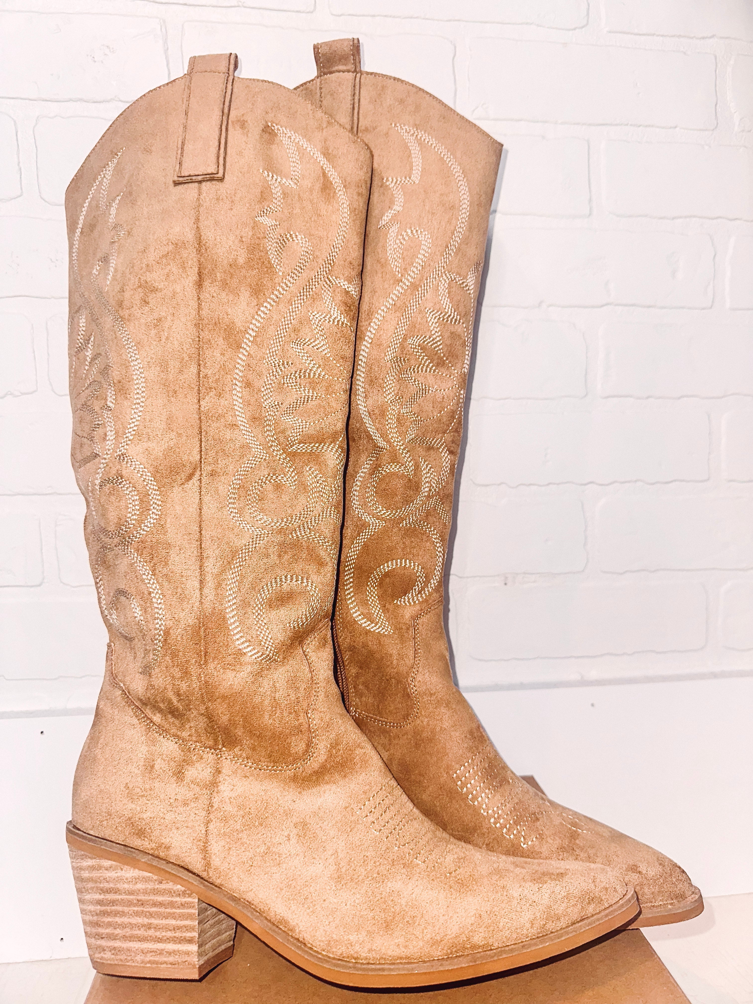 Giada Embroidered Cowgirl Boots-- Apricot