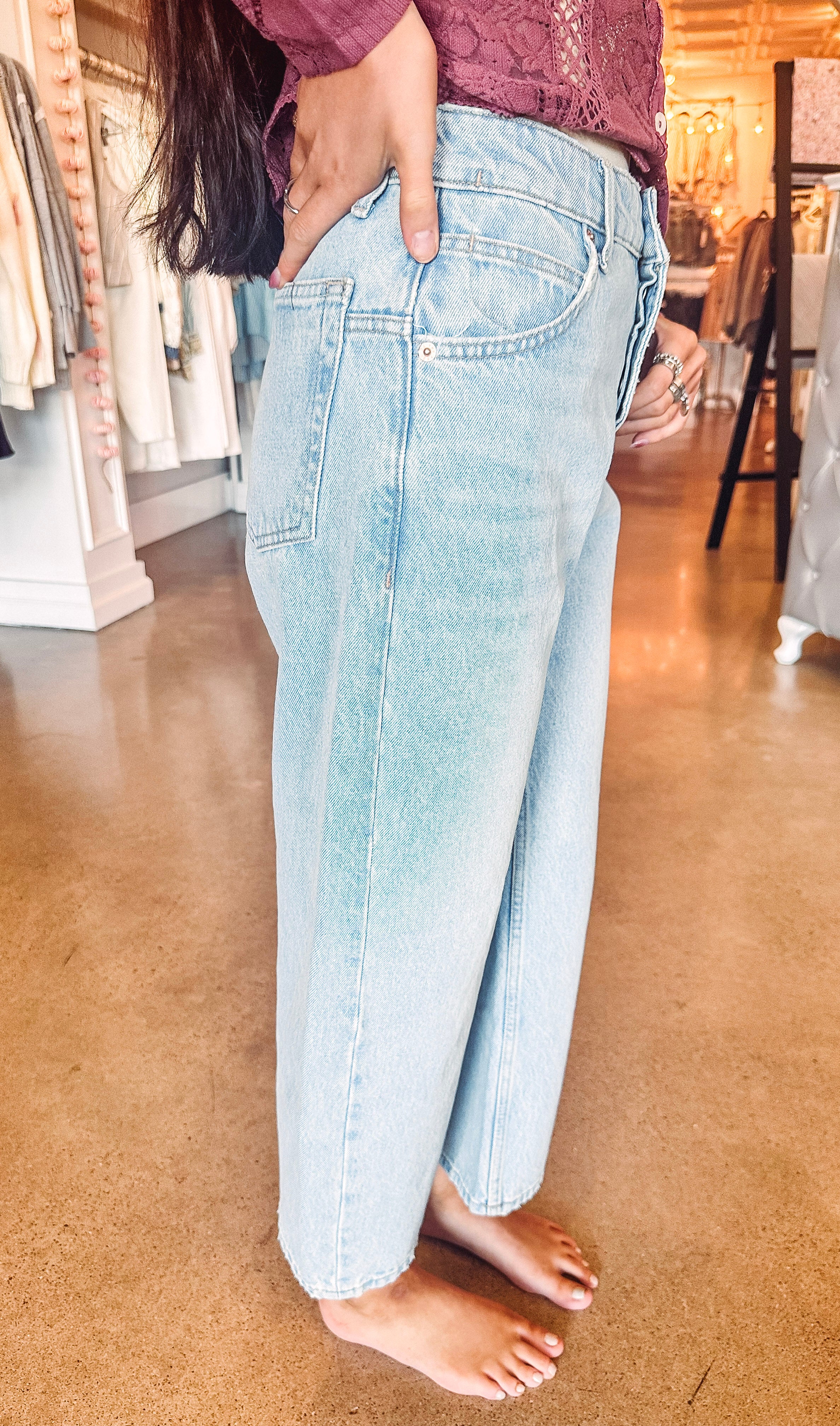 These jeans from the We The Free collection bring effortless cool to your wardrobe with their low-rise, dropped barrel fit that’s as comfortable as it is stylish. Featuring a button-fly closure and classic five-pocket design, they’re crafted from premium rigid denim with an ankle-length inseam perfect for showing off your favorite shoes. Whether paired with casual sandals or dressed up with kitten heels, these jeans are your new go-to for endless outfit possibilities.