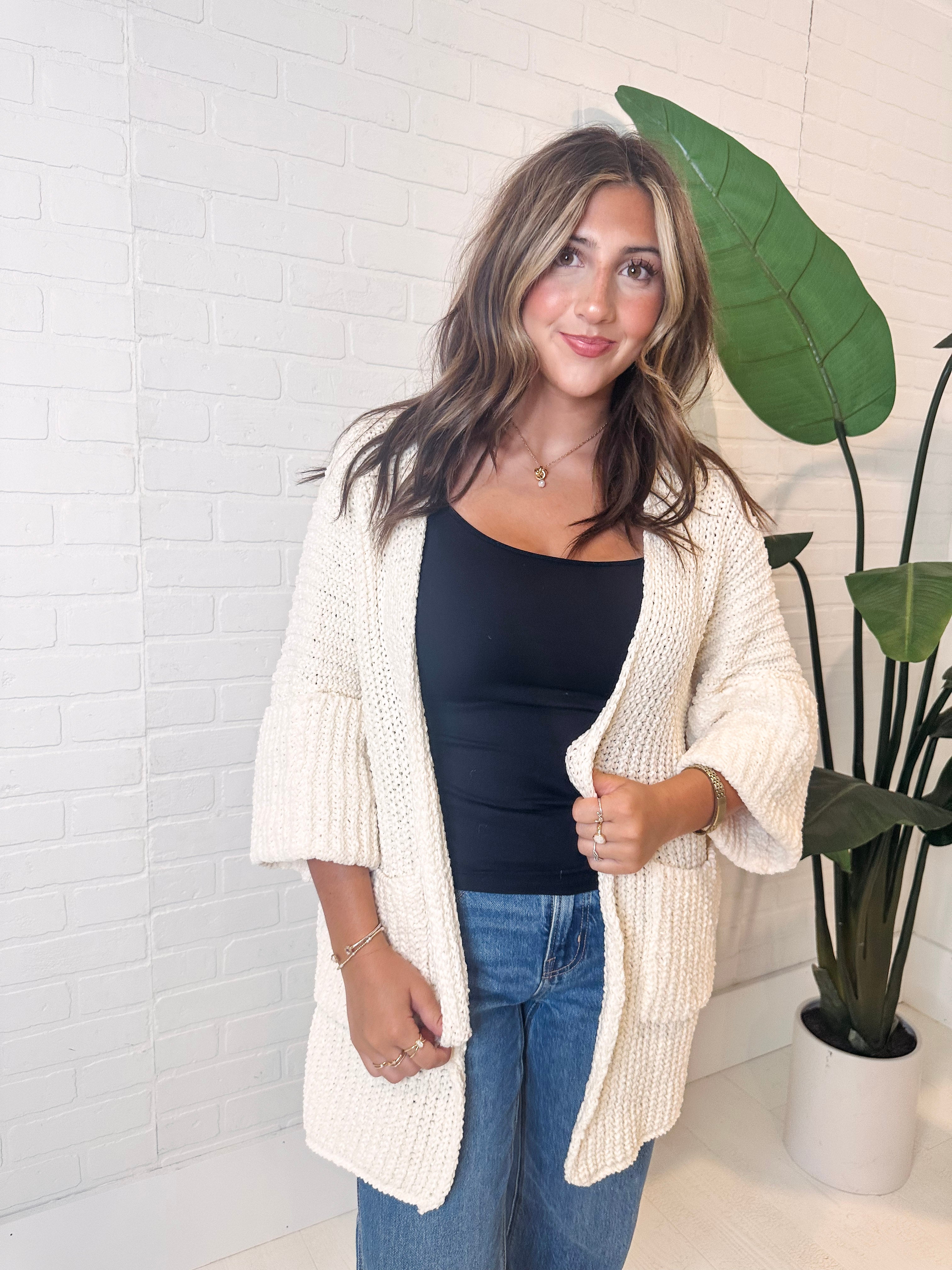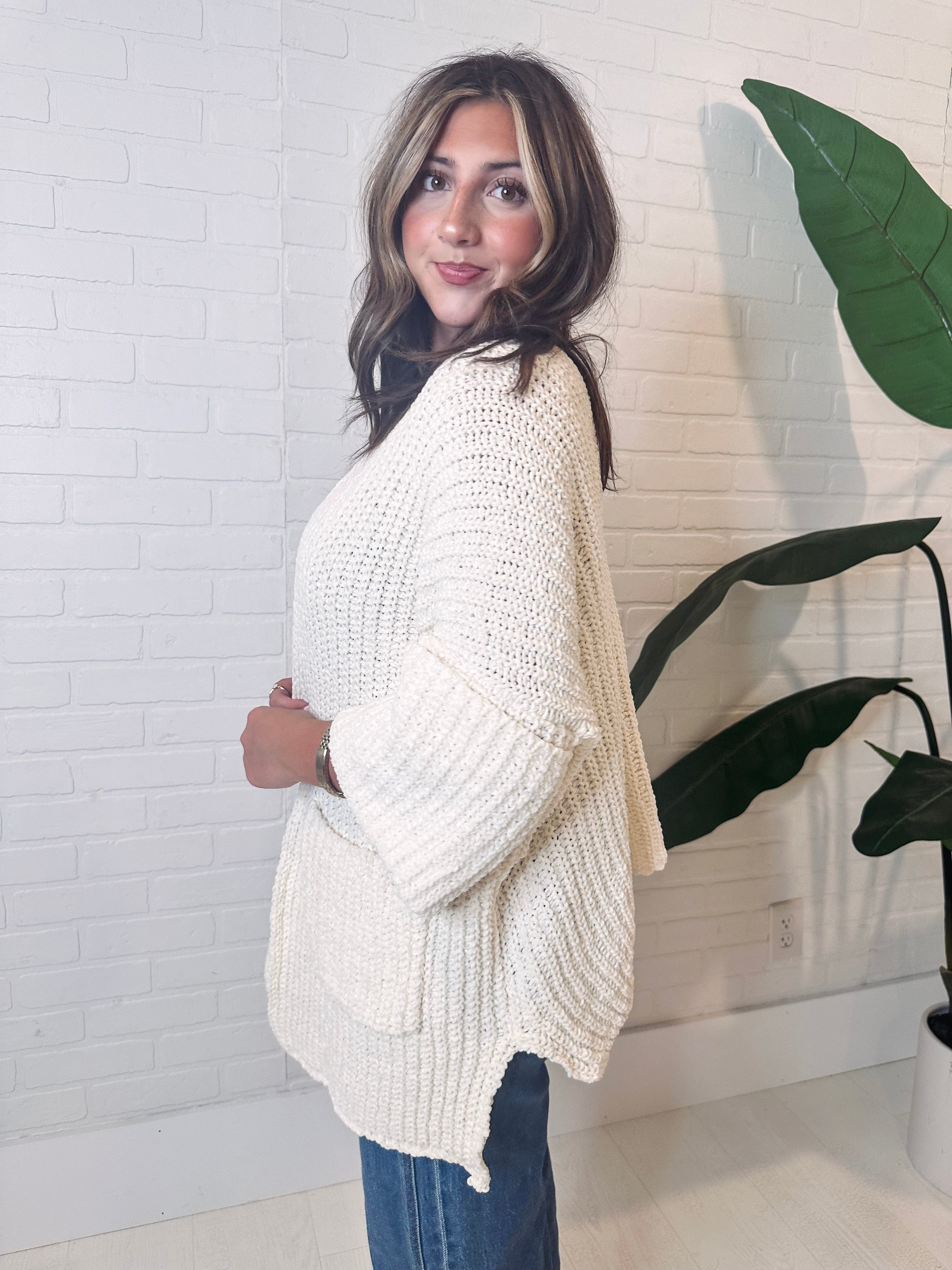 Cuddle Up Chunky Chenille Cardigan-- Cream