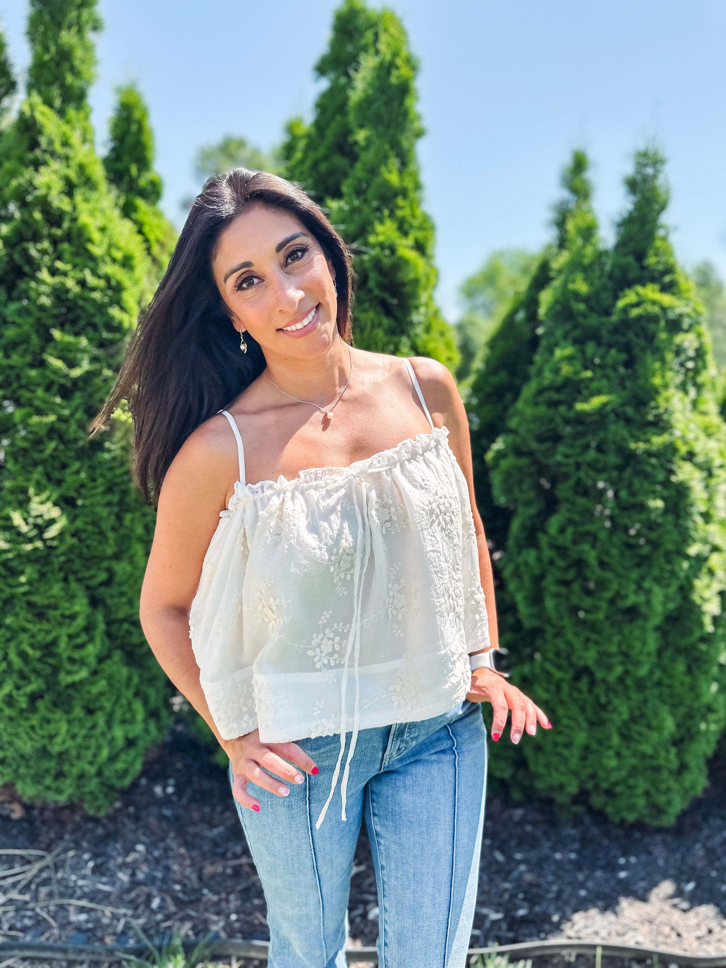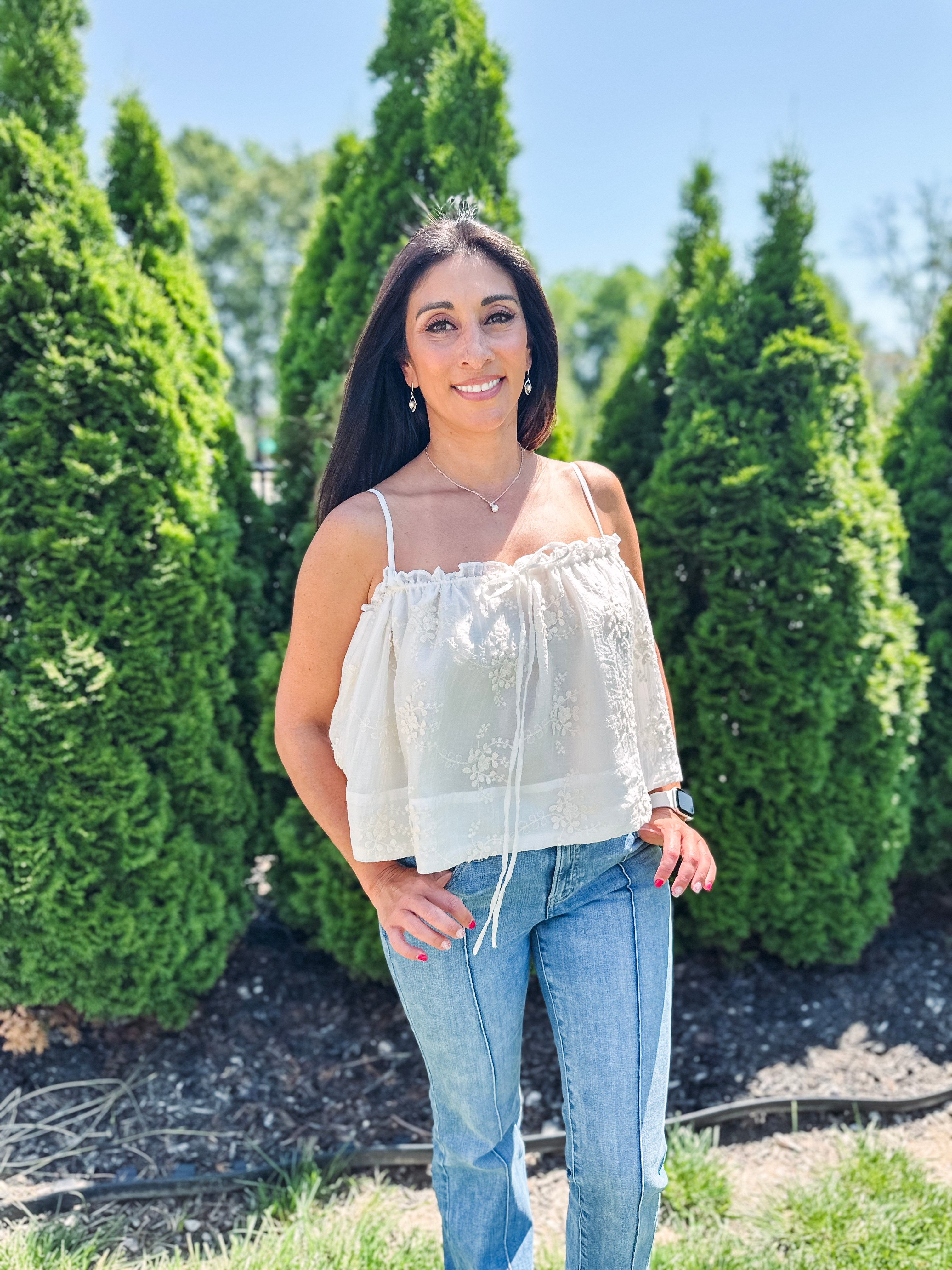 Release your inner girly-girl with our South of France Ruffled Camisole. This top features a playful bubble ruffle detail and flirty strappy camisole straps for a fun and flirty look. Perfect for any occasion, this camisole will have you feeling confident and cute!