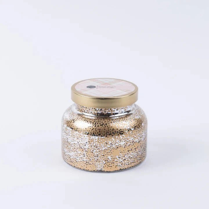 Elevate your home's ambiance with our dazzling Sweet Grace Mercury Jar Candle. Featuring a radiant gold and silver mercury finish, it adds a touch of magic to any occasion, from festive dinners to cozy gatherings. Enjoy a 65-hour burn time.
