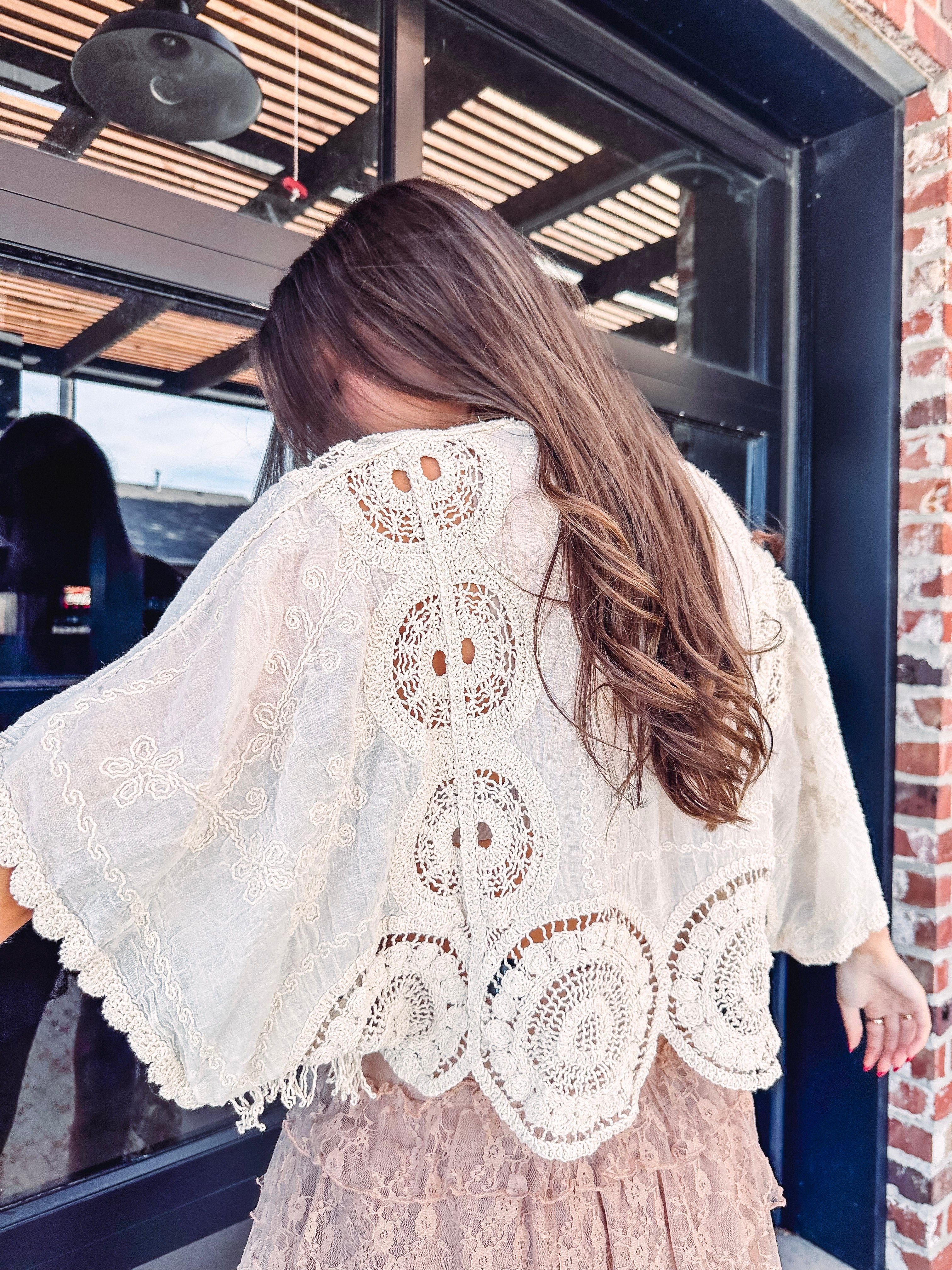 The Isabella Scalloped Top brings effortless charm with its playful batwing sleeves and delicate fringe detailing that dances with every move. Soft natural tones create a versatile piece perfect for layering or wearing solo, while the signature scalloped edges add a touch of whimsy to this wardrobe essential. Whether you're dressing up or keeping it casual, this top delivers personality and comfort in one breezy silhouette.