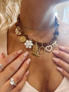 Add a playful country vibe to your look with this Bandana Charm Necklace in warm brown tones. Featuring 9 unique western charms, this handmade necklace brings a fun, one-of-a-kind flair that effortlessly elevates any outfit. Perfect for those who love a trendy twist on classic country style.