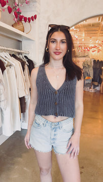 Slip into effortless style with the Corey Button Down Sleeveless Sweater, featuring a chic mineral blue wash that pairs perfectly with your favorite white tee. The three-button front detail adds a polished touch, while the large rib knit construction delivers cozy comfort and flattering texture. Layer it, dress it up, or wear it solo—this versatile piece is ready for anything.