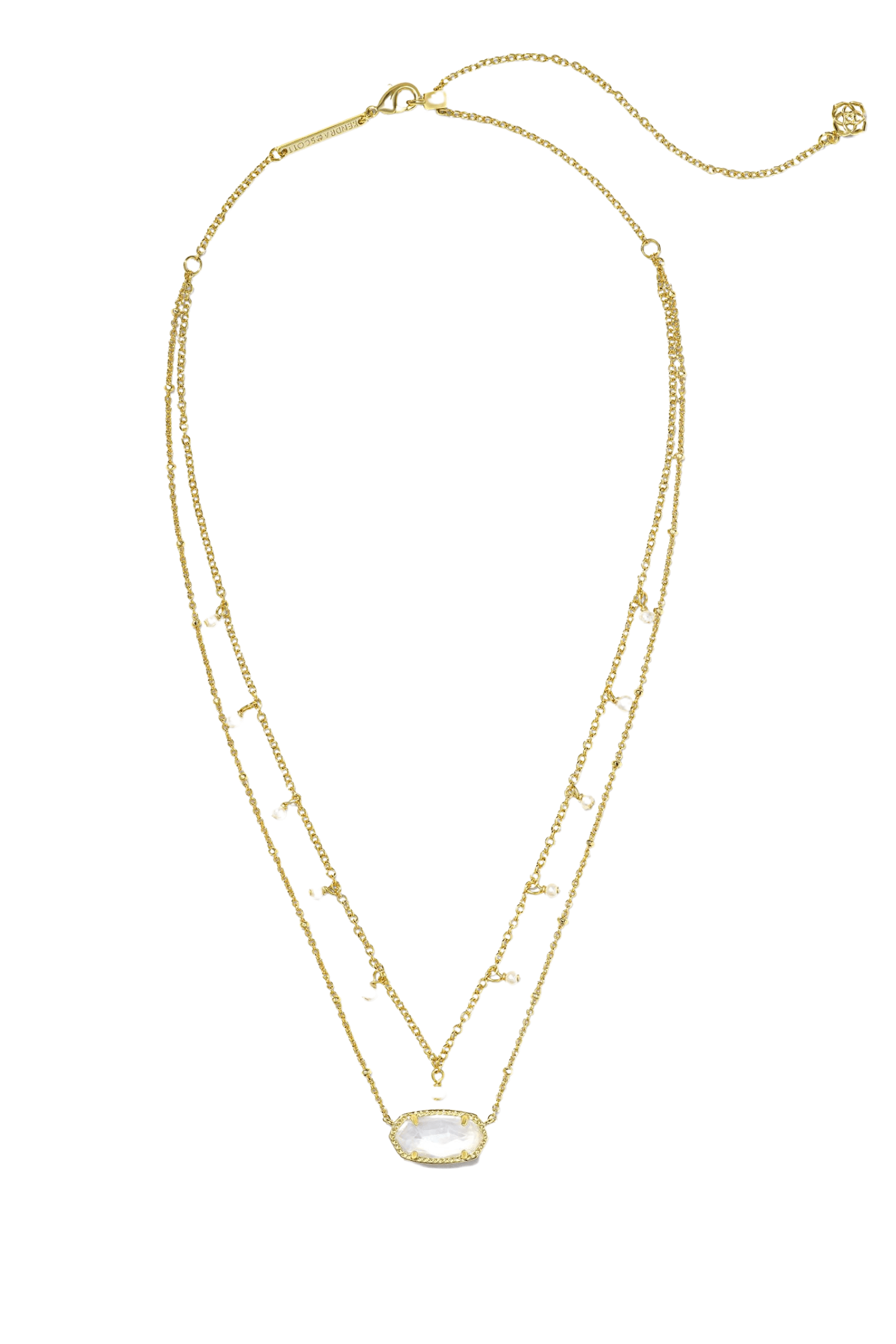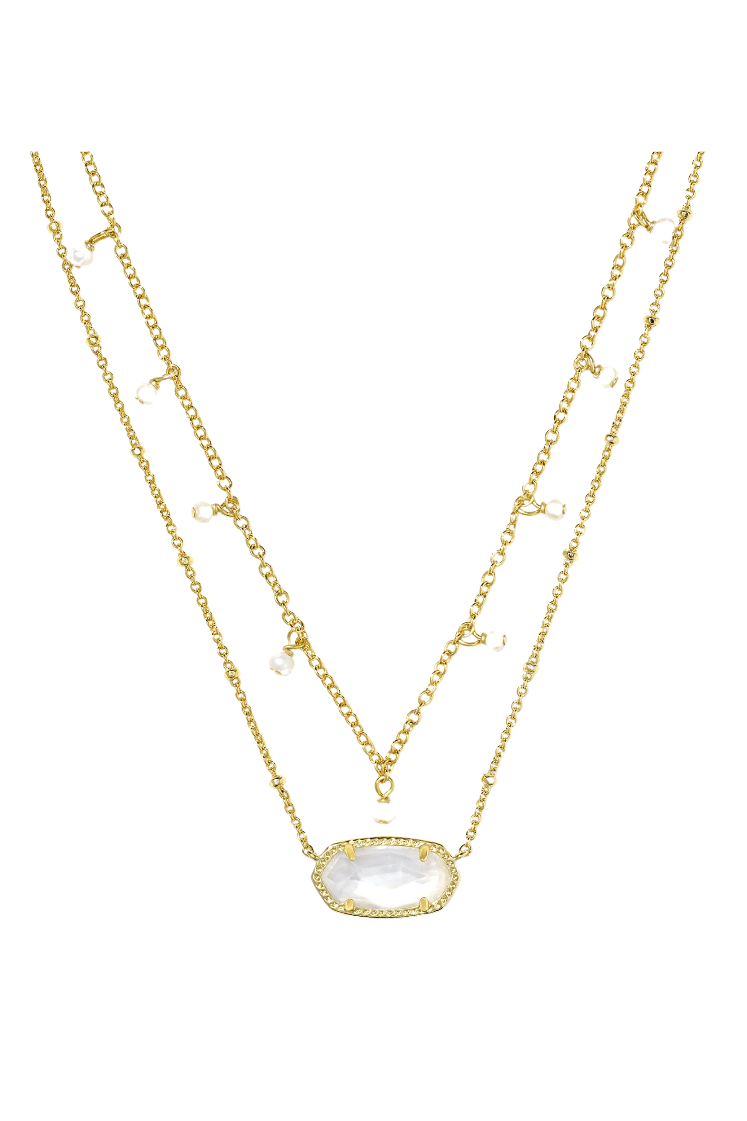 Say 'hello' to effortless layered style with the Kendra Scott Elisa Gold Pearl Multi Strand Necklace in Ivory Mother of Pearl! Featuring our iconic Elisa shape on a satellite chain plus a pearl-studded second chain, you'll be the envy of all your friends. Get ready to strut your stuff and totally slay your look!