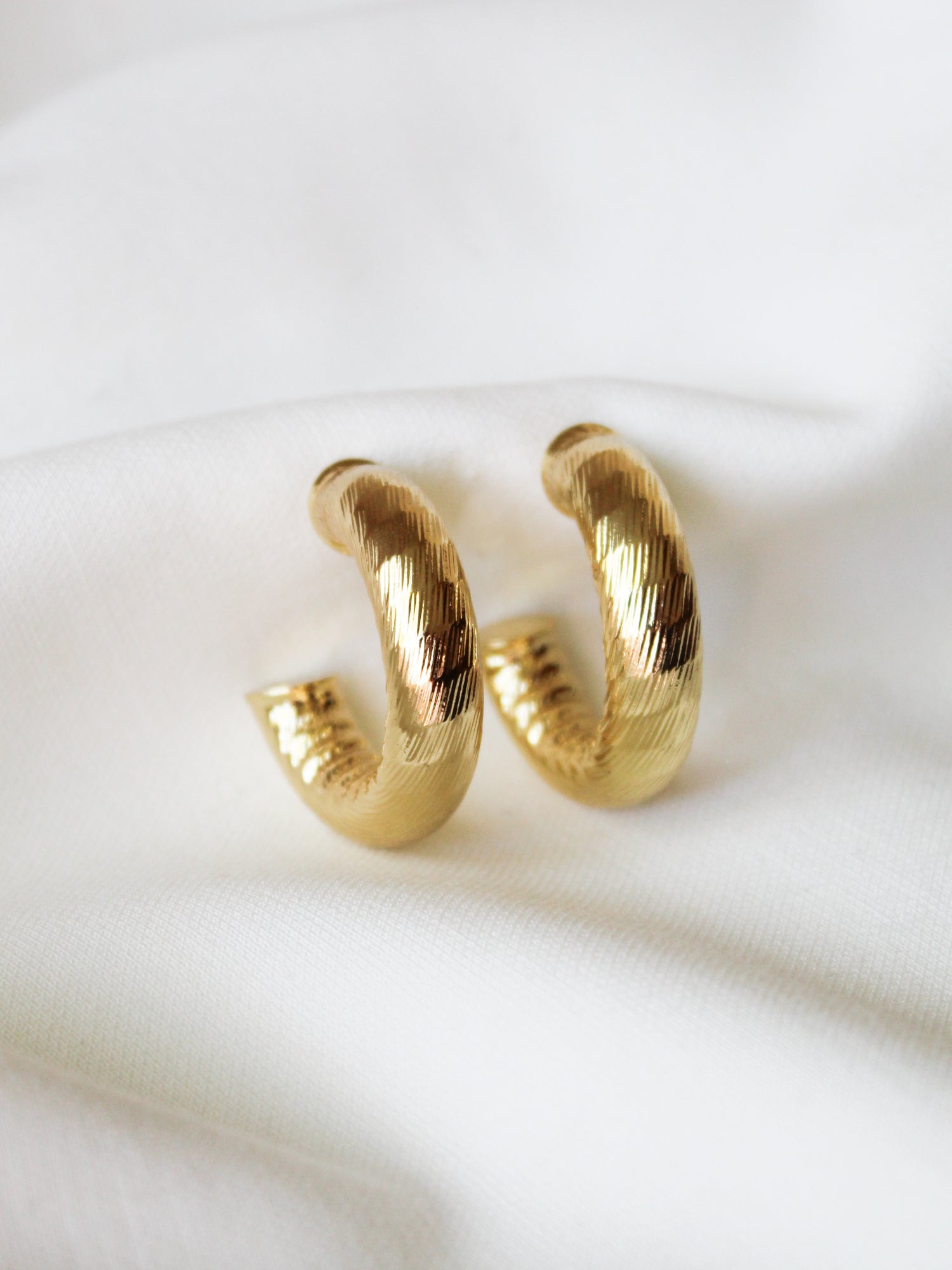 These Ladrielle Hoop Earrings are the perfect addition to any stylish outfit. Their etched line chunky hoop design adds a trendy touch to your look, while the gold finish brings a touch of luxury. Don't miss out on these must-have accessories!