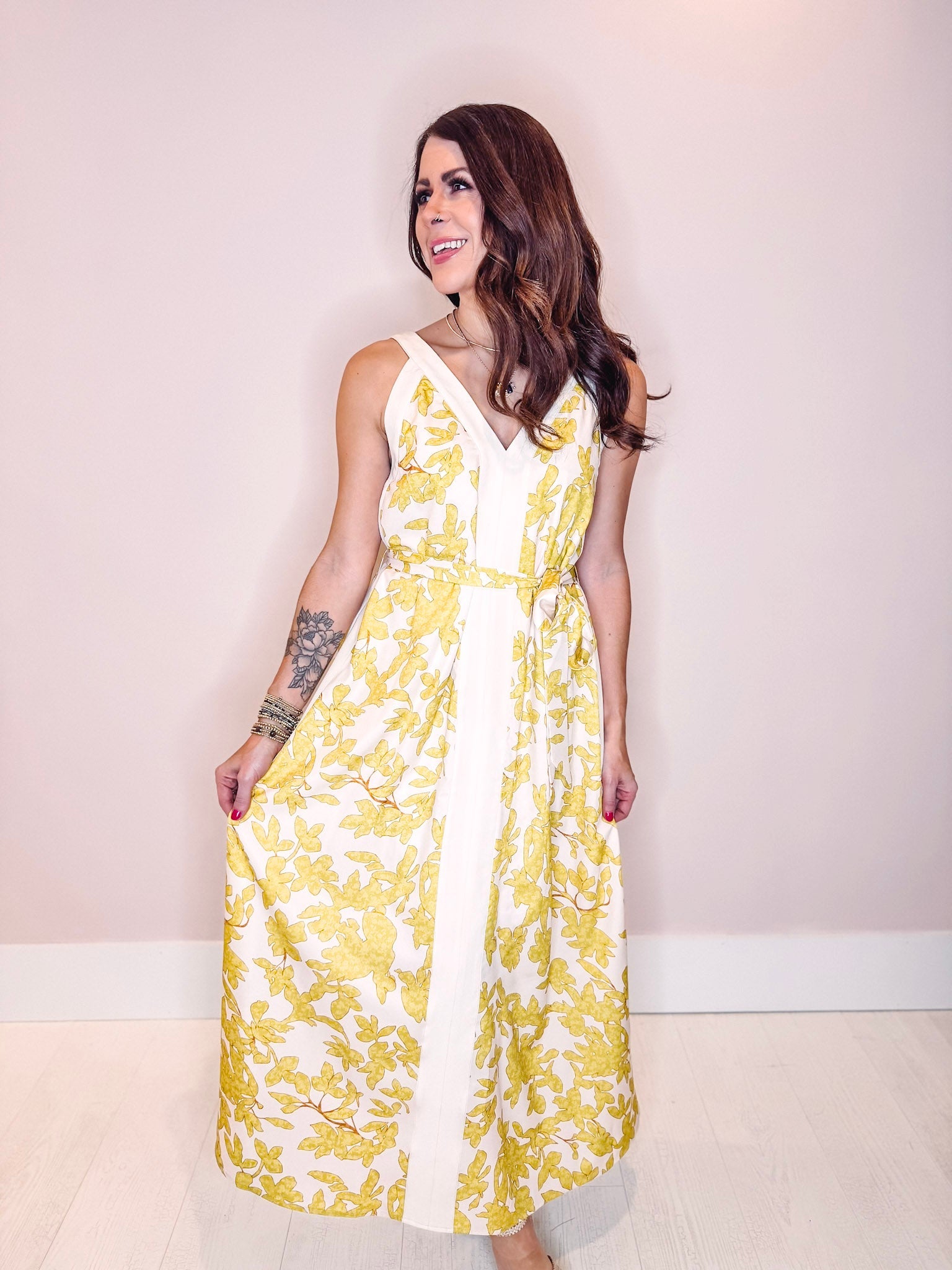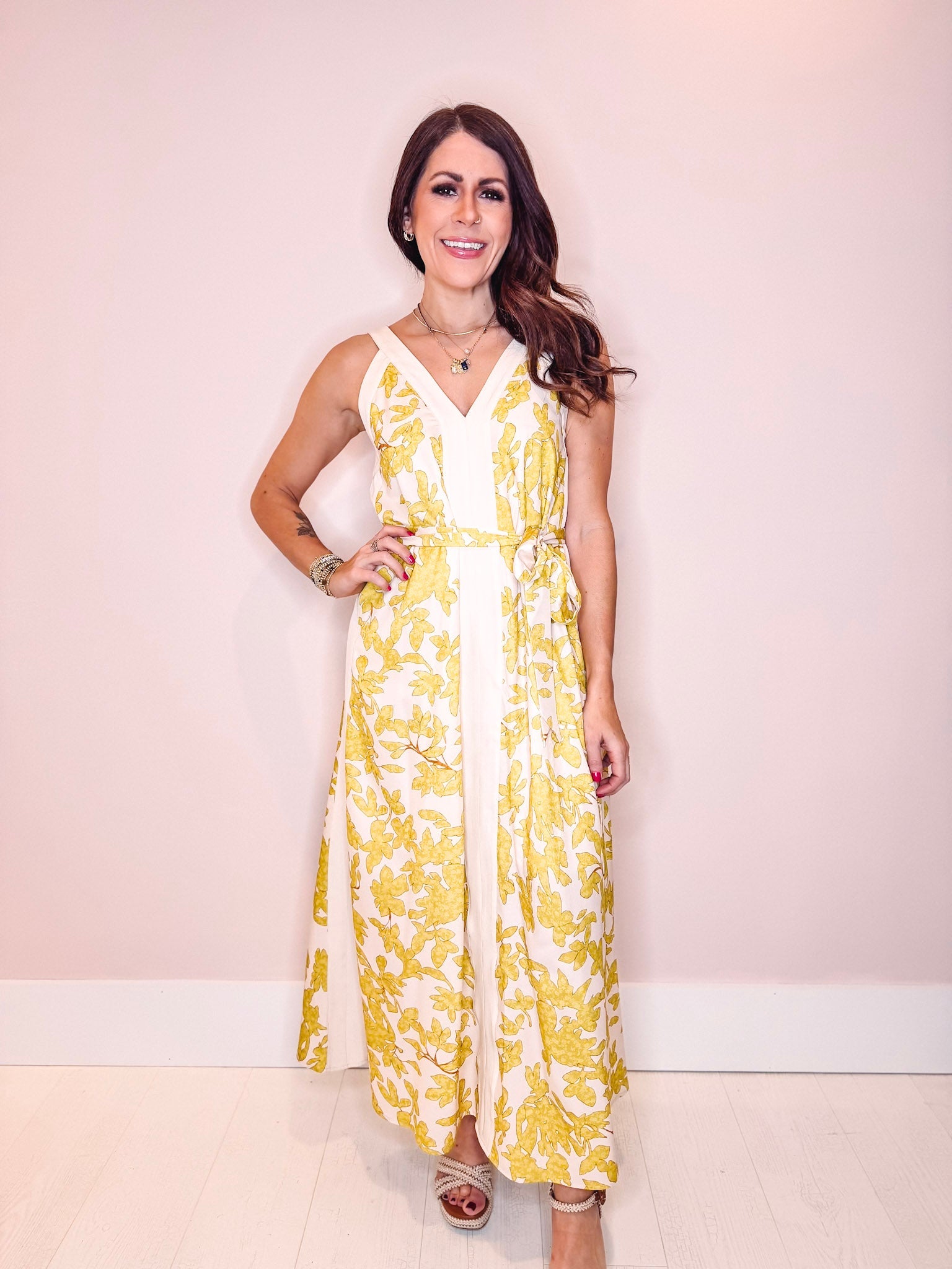Brighten your warm-weather wardrobe with this cheerful maxi dress featuring a vibrant citrus floral print that practically glows in the sunshine. The flattering belted waist cinches your silhouette while the flowing maxi length keeps you cool and comfortable. Fully lined for a smooth, confident fit that moves with you. Perfect for garden parties, weekend getaways, or any occasion calling for effortless style with a zesty twist.