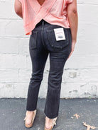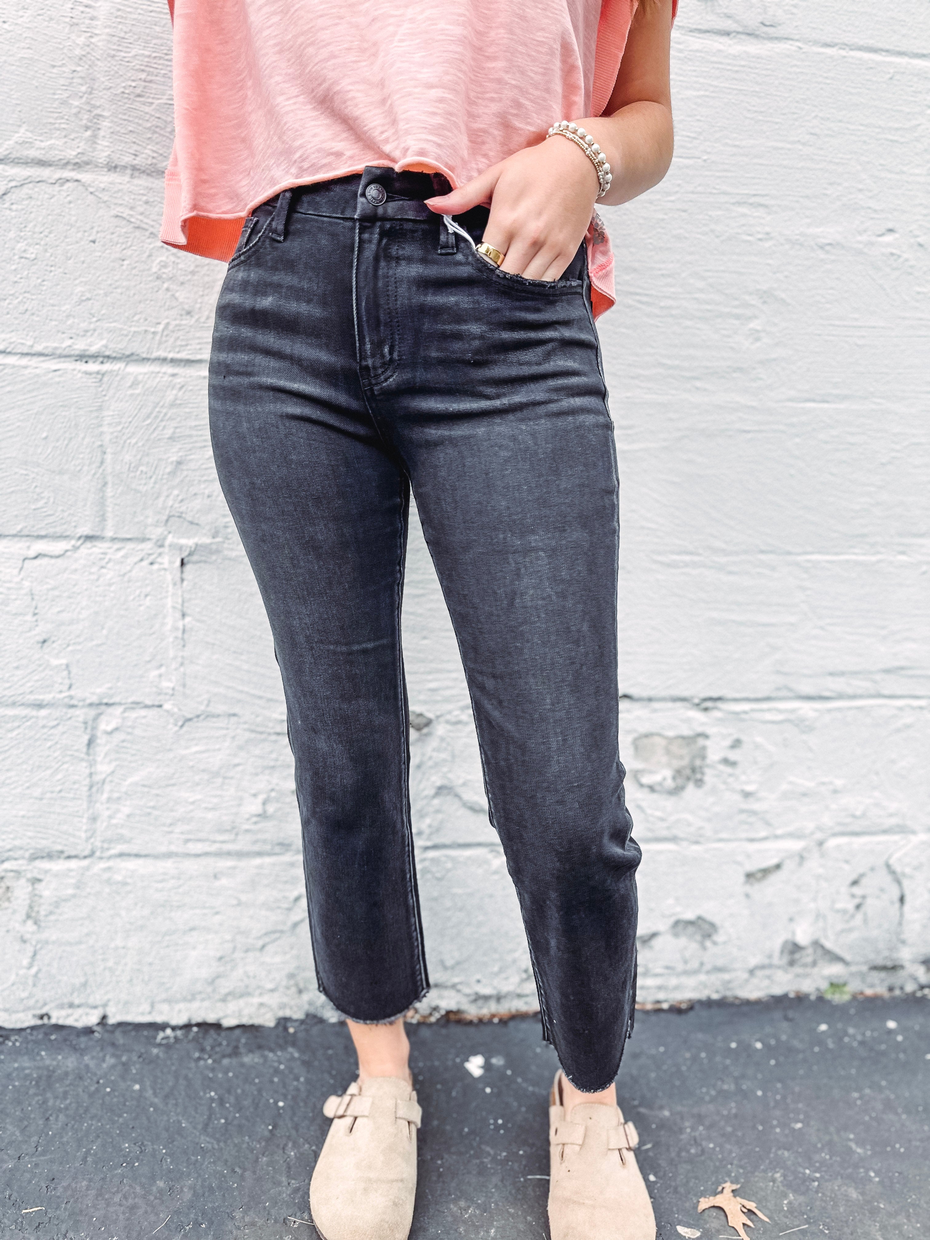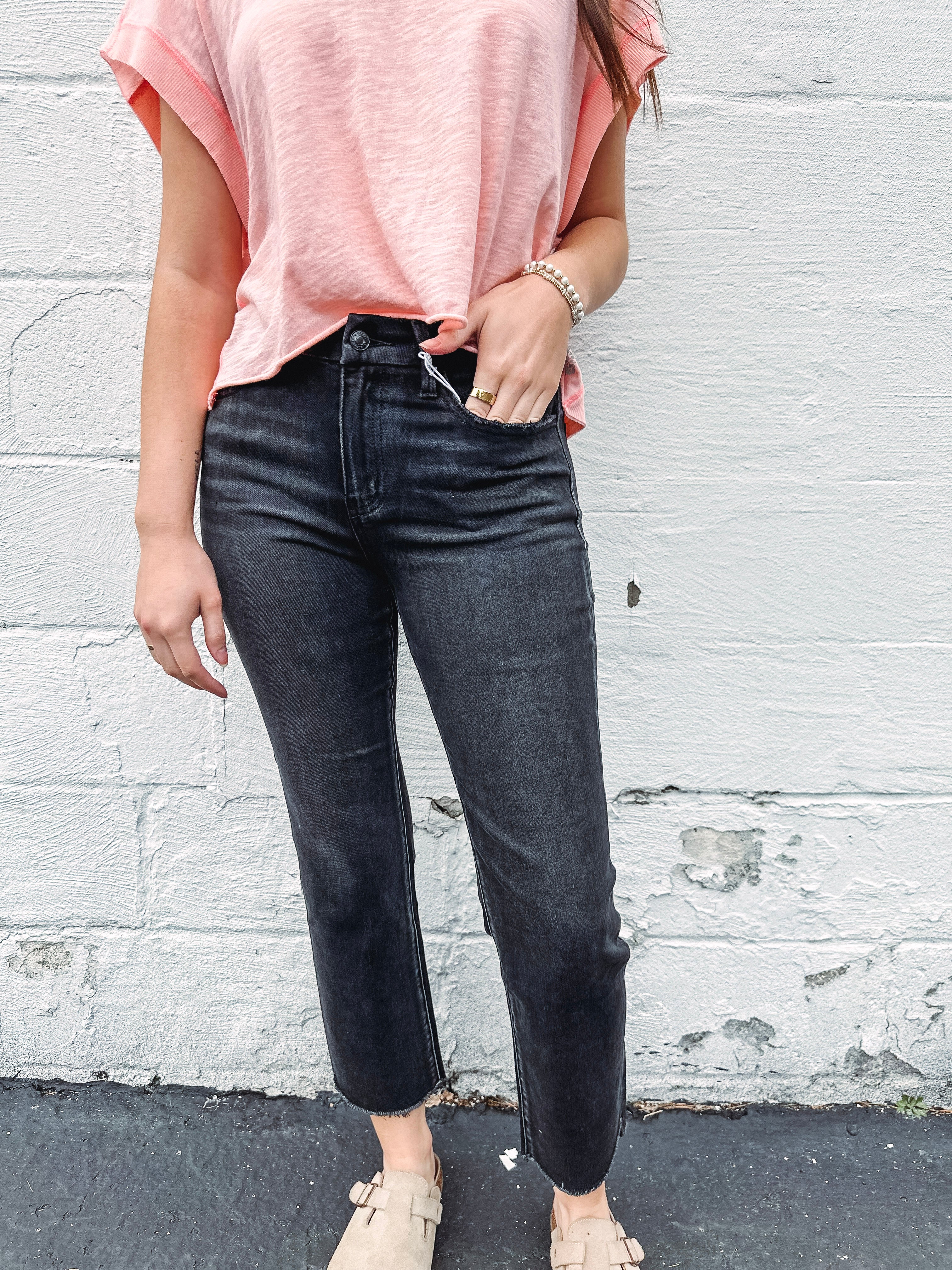 Get ready to rock any outfit with our She's So Sweet High Rise Slim Straight Black Denim. Every fashionista knows the importance of a reliable pair of black denim that can be dressed up or down for any occasion. These jeans will elevate your style and become a staple in your wardrobe.