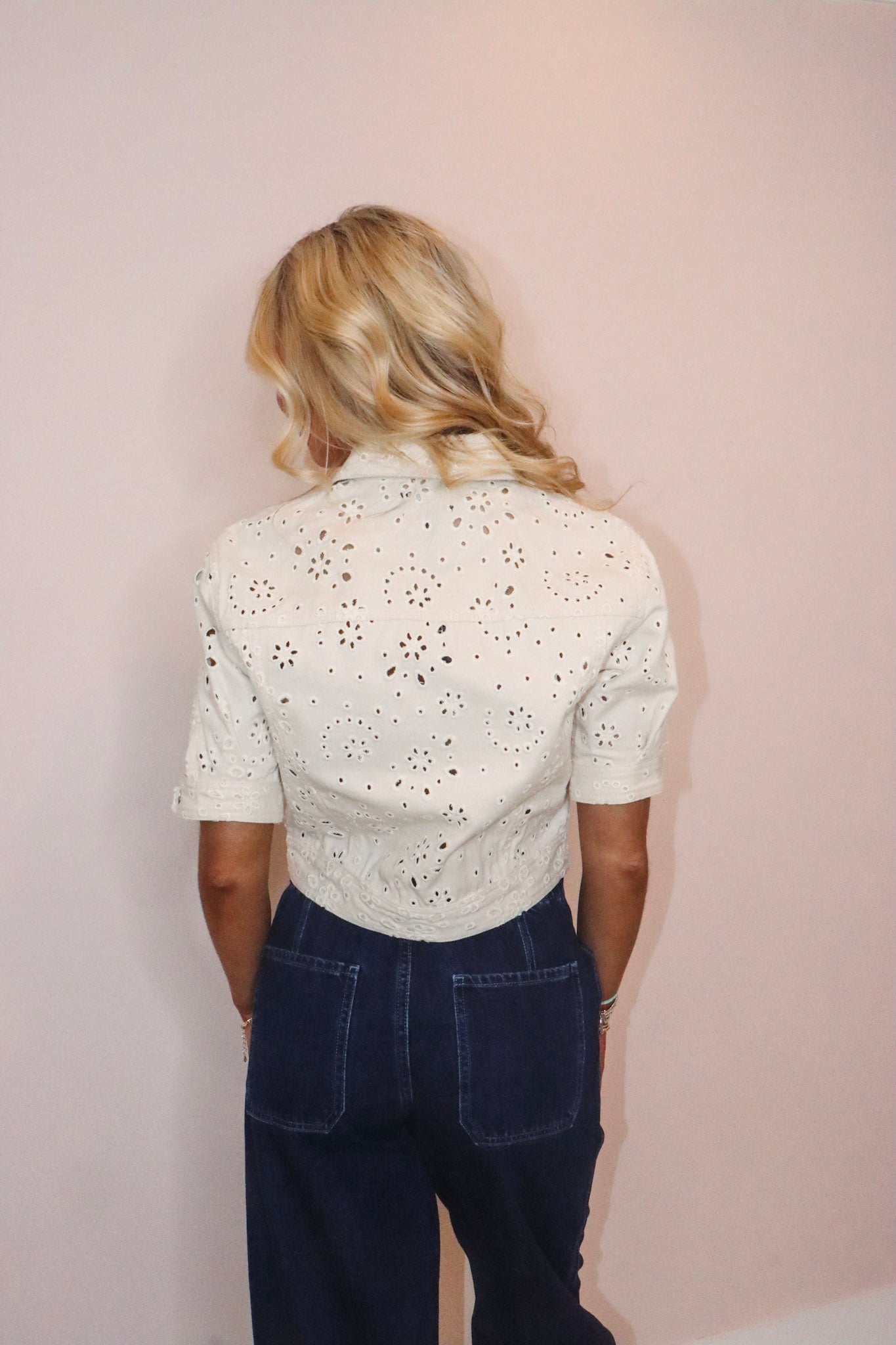 Steve Madden Blue Eyelet Jacket -Sea Mist