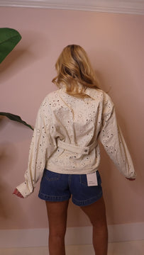 Introducing the Henrietta Jacket in Sea Mist—where quirky meets classic! This button-up denim stunner flaunts delicate eyelet detailing that transforms an everyday staple into something wonderfully unexpected. Crafted from quality denim, it's built to last while staying soft and comfortable against your skin. Layer it over everything from tees to dresses, and watch it work its magic across seasons. Whether you're channeling casual cool or dressed-up chic, this versatile jacket proves that timeless style doesn't have to be boring.