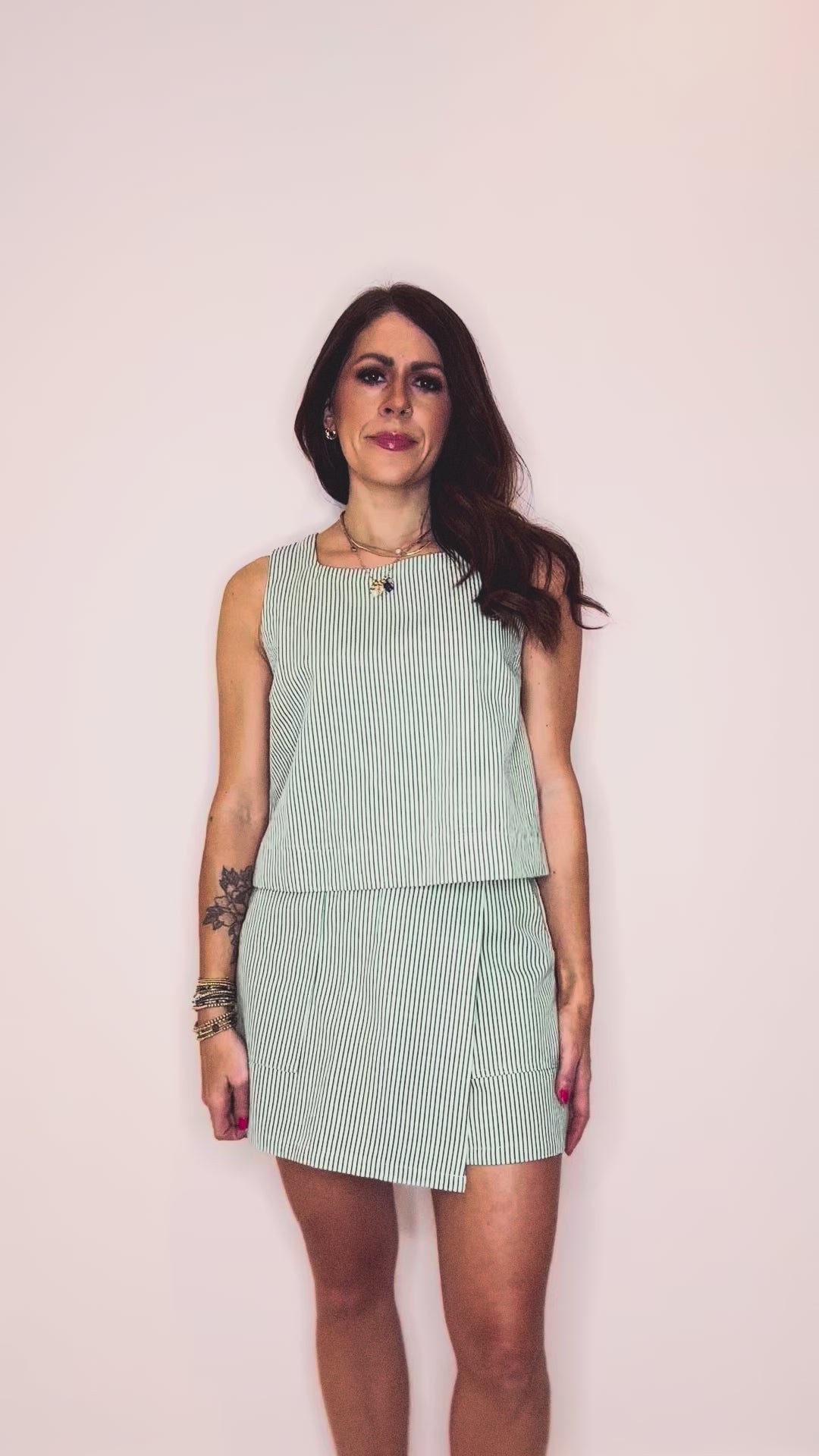 Elevate your game-day look with the Tegan Striped Tank and Skort Set! This dynamic duo features crisp green and white pin stripes that bring instant personality to your wardrobe. The breezy tank pairs perfectly with the coordinating skort, creating a put-together ensemble that's ready for anything—from casual outings to active adventures. Mix, match, or wear together for effortless style that doesn't take itself too seriously. Perfect for those who love a little flair with their comfort.